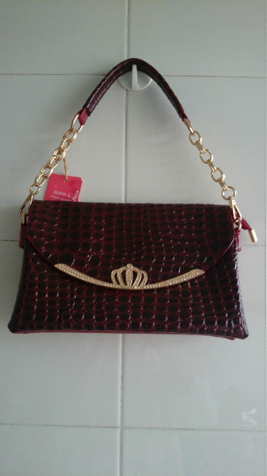 Fake Diamonds Gold Hardware Morden Handbag Luxury Women Zippered PU Crown Red