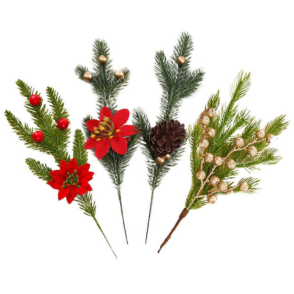 Fake Greenery Pine Pick Artificial Pine Cones Xmas Party Decoration Commercial Place Decoration Assorted Color 18x10cm 4Pcs