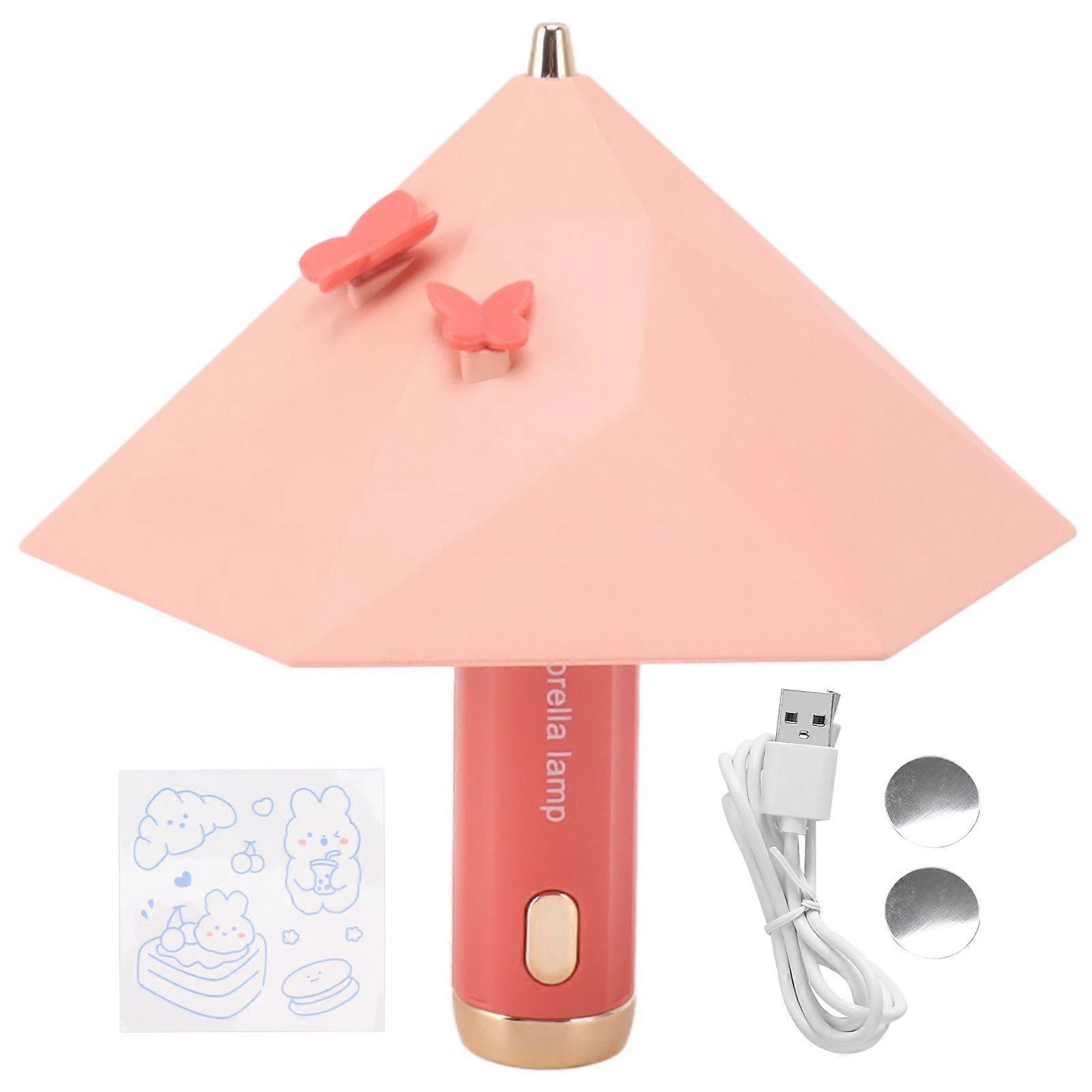 Umbrella Shape LED Bedside Lamp USB Rechargeable 3 Gear LED Bedroom Learning Reading Table Light 500mAh Pink
