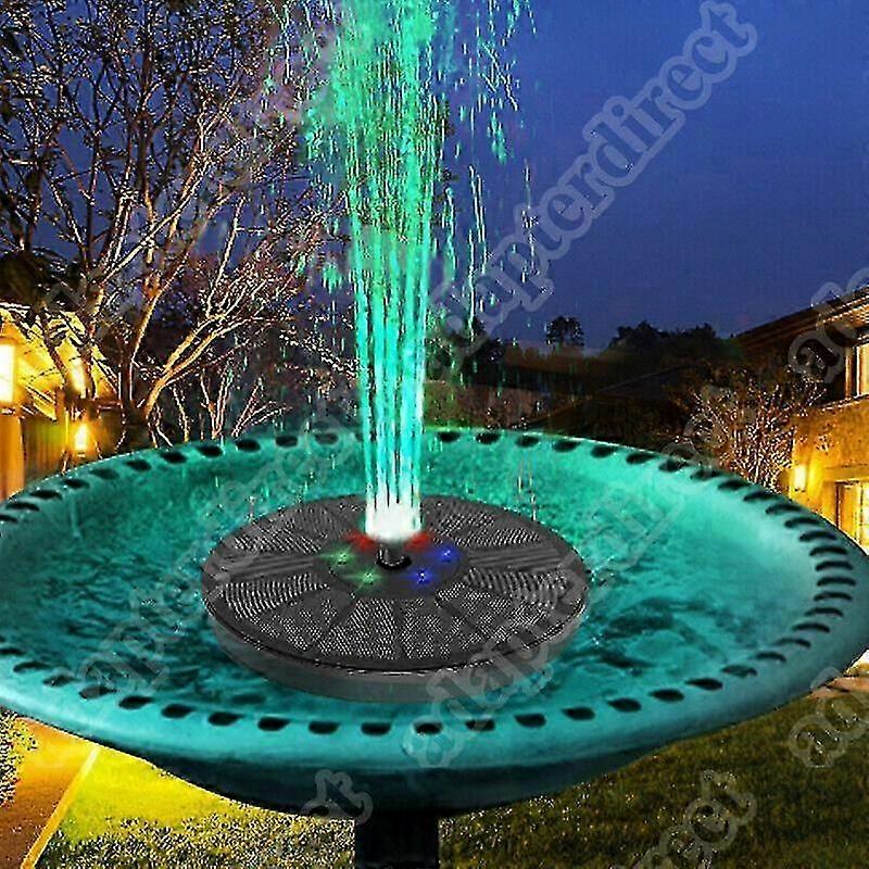 2. Beautiful LED colorful lights: 7 LED lights provide three colors (red, green, and blue) that illuminate automatically at dusk, enhancing the appearance of your pool at night. The solar bird bath fountain starts automatically within 3 seconds when placed in direct sunlight. It includes a built-in high-performance polymer lithium battery. Spray height exceeds 30 cm regardless of weather conditions. It can operate up to 5 hours without external power or additional batteries.