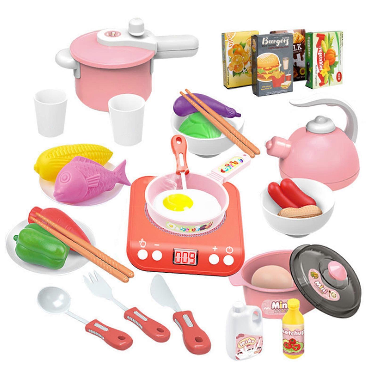 34-Piece Kids Kitchen Toy Set with Light and Music, Simulation Induction Cooker, Pretend Play Appliances with Tableware and Food, Perfect Holiday Gift