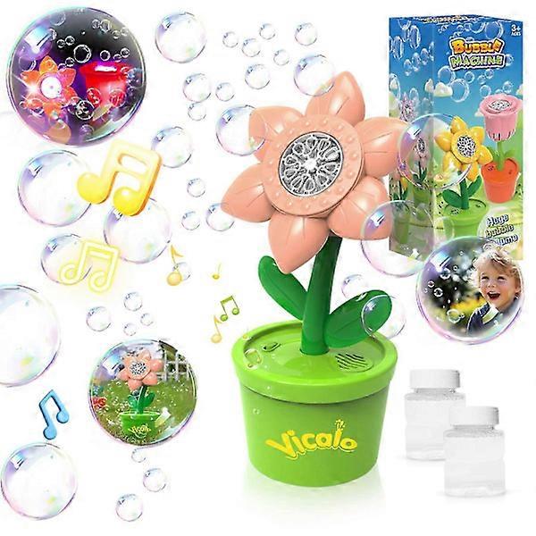 Automatic Bubble Machine with Light and Music, Sunflower Bubble Blower Toys for Kids with Bubble Liquid for Party Pink