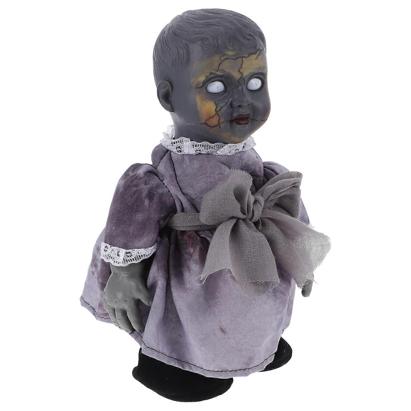 Voice Activated Halloween Walking Doll with Glowing Eyes and Creepy Sounds – Scary Haunted House Decoration for Indoor Party and Costume Use