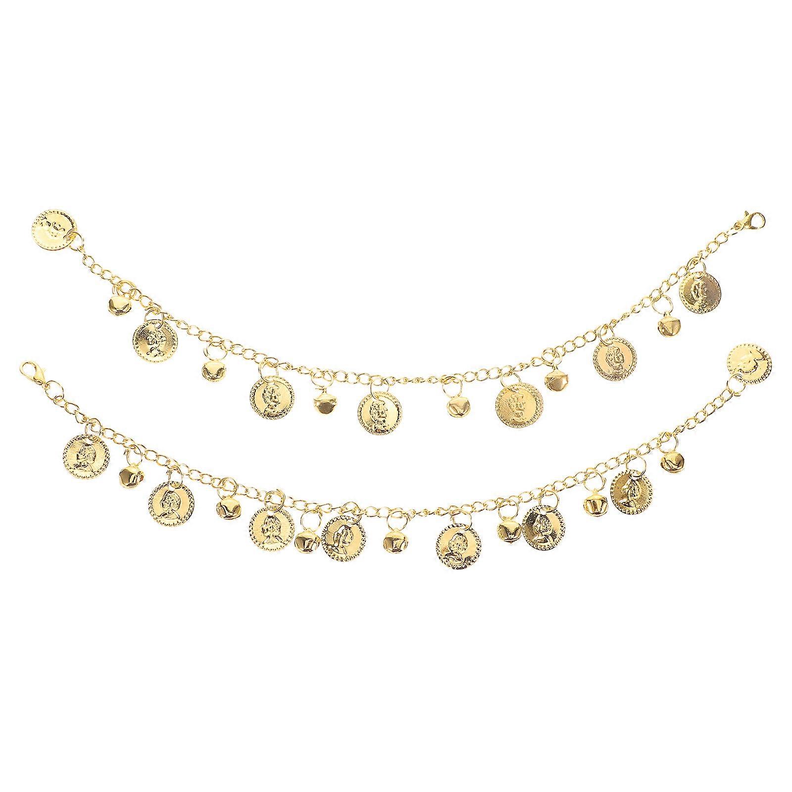 Shiny Dance Costume Accessories Belly Dancing Jewelry With Tassel Barefoot Anklet For Women Festivals Golden 1 Pair