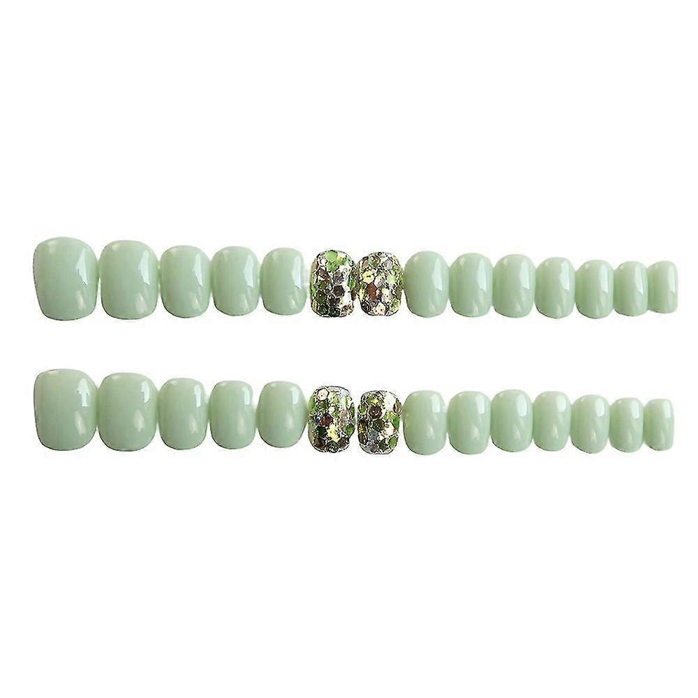 Glossy Fake Nail Diy Green Solid Color Nail With Adhesive Tabs Glue Models