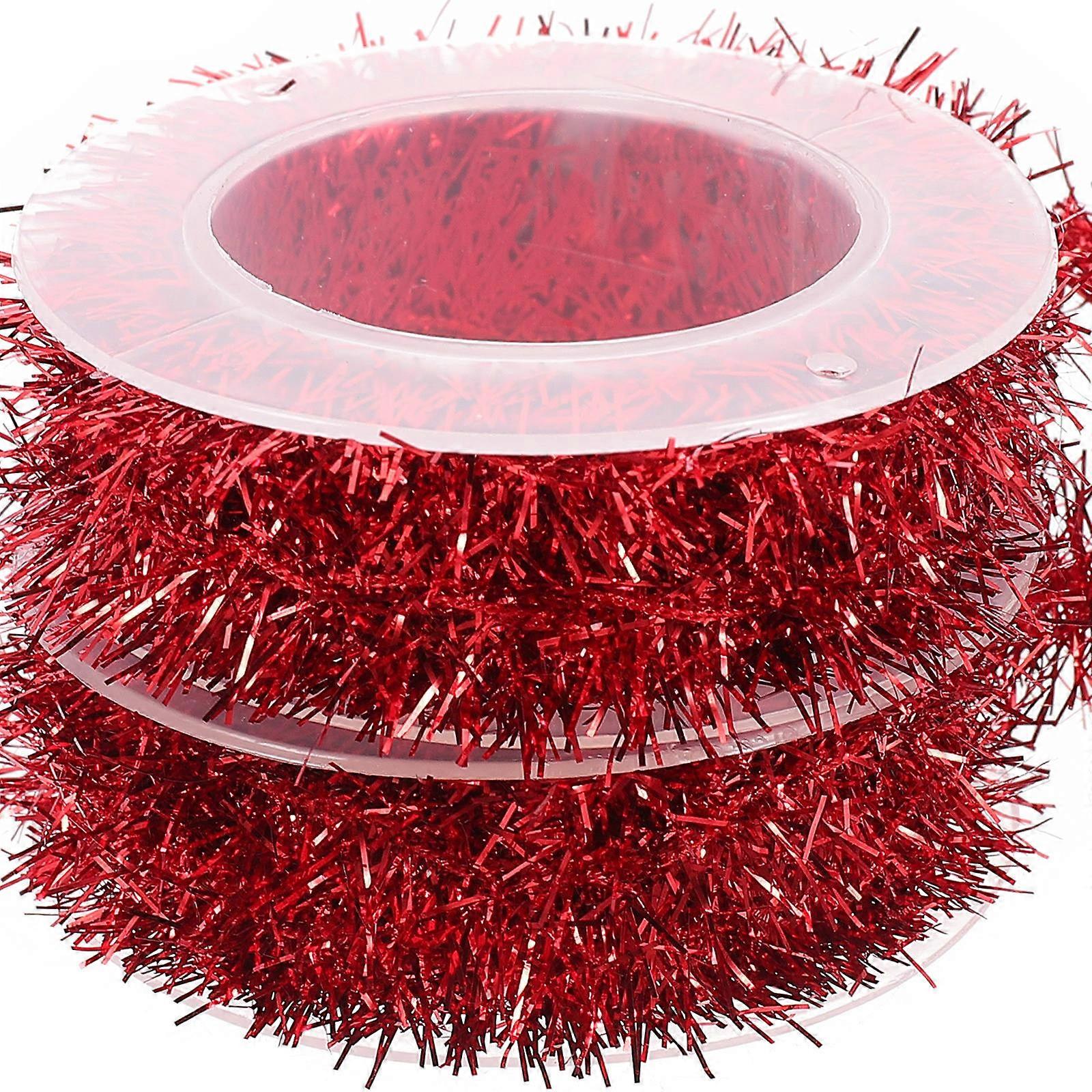 Made of which is , sturdy and wear-resistant. Adding a touch of elegance to your party, or crafts. Great prop to the creativity and hands-on ability. Very suitable and Great decoration for Christmas, Thanksgiving, Festival, and Dinner Party. You can used our Christmas Ribbon for many occasions. Features - Color: Red -Material:Plastic - Size: 6.50X6.50X2.00cm/2.55X2.55X0.79in -You can use these Tinsel Garlands together with other ornaments to decorate the Christmas tree. -The tinsel garland is thicken, showing strong vigor, echoing the festive atmosphere. -Easy to use and convenient to carry, you can use it to decorate many places, can be used easily. -The garland decoration is perfect for decorating your garden, yard, door, etc, that is versatile. -Easy to on wall, window, fireplace, patio, shop window and others. Package list: 2 x rolls of tinsel garlands