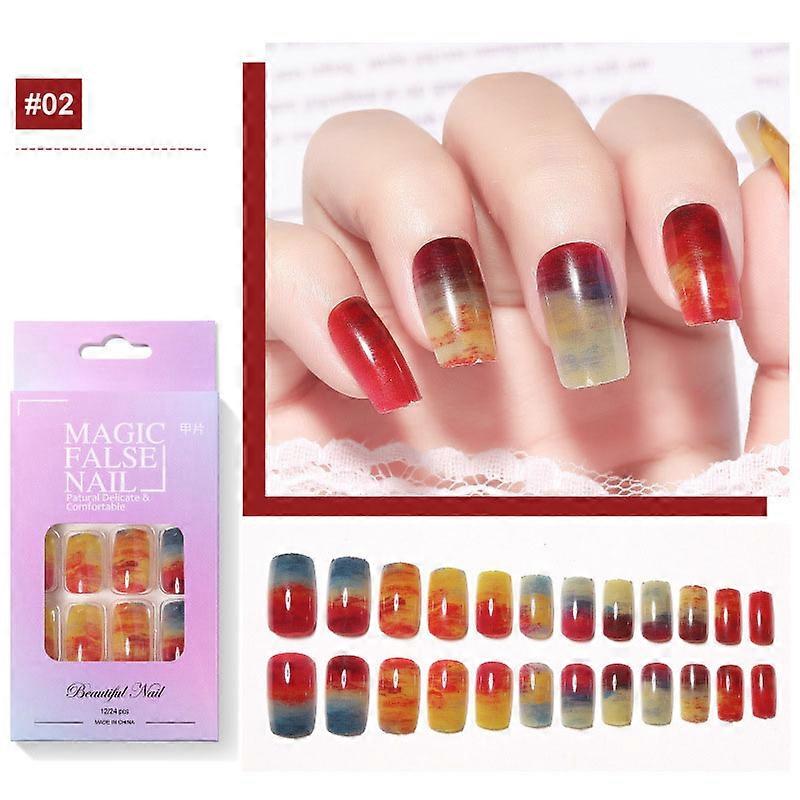 Glossy Marble Cloud Ballerina False Nail Gradient Middle Long Press on Ballet Fake Nails - High Quality