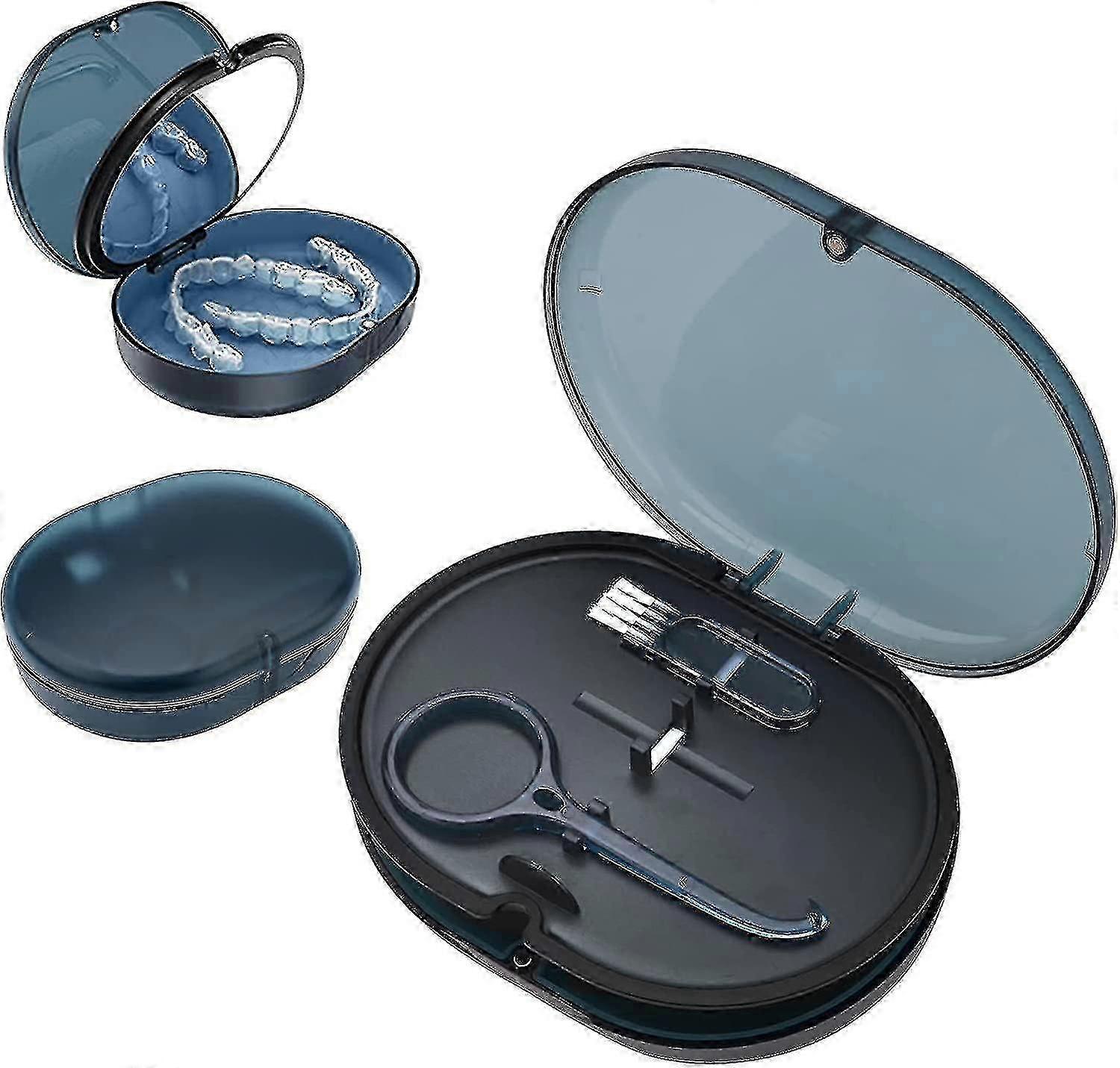 Denture Case, 2-tier Storage Box with Mirror for Orthodontic Retainers