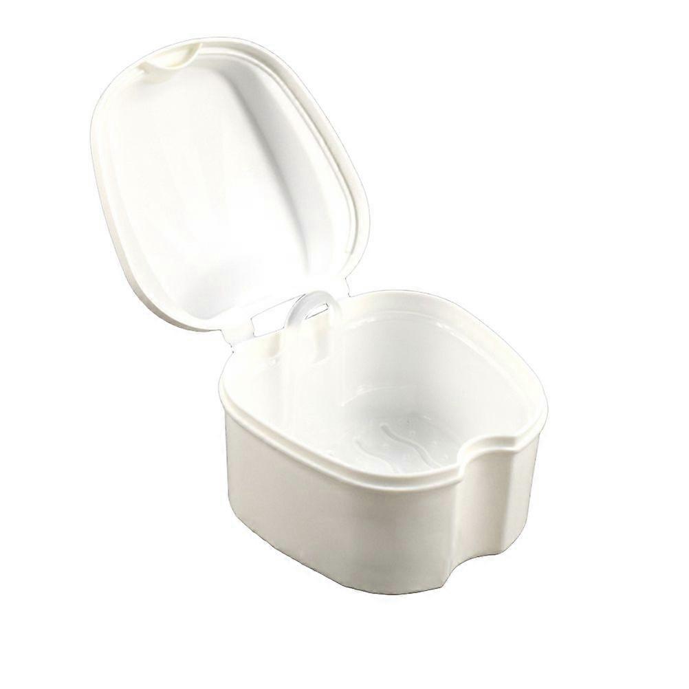 Denture Bath Box Case Dental Orthodontic Retainer False Teeth Storage Case Box with Strainer (White)