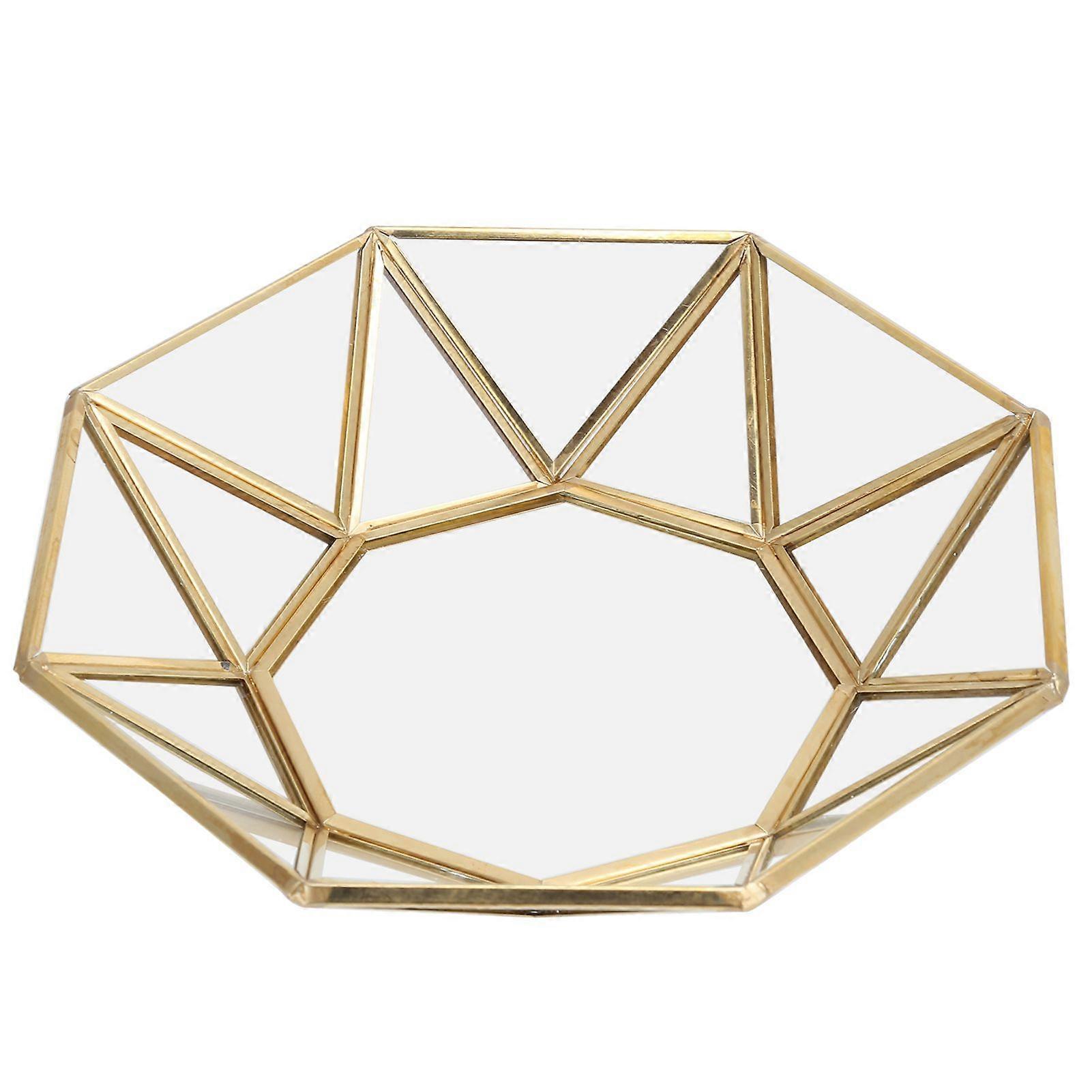 Octagonal Tray Glass Storage Decorative Display Tray Sundries Dessert Plate Organizer,Gold