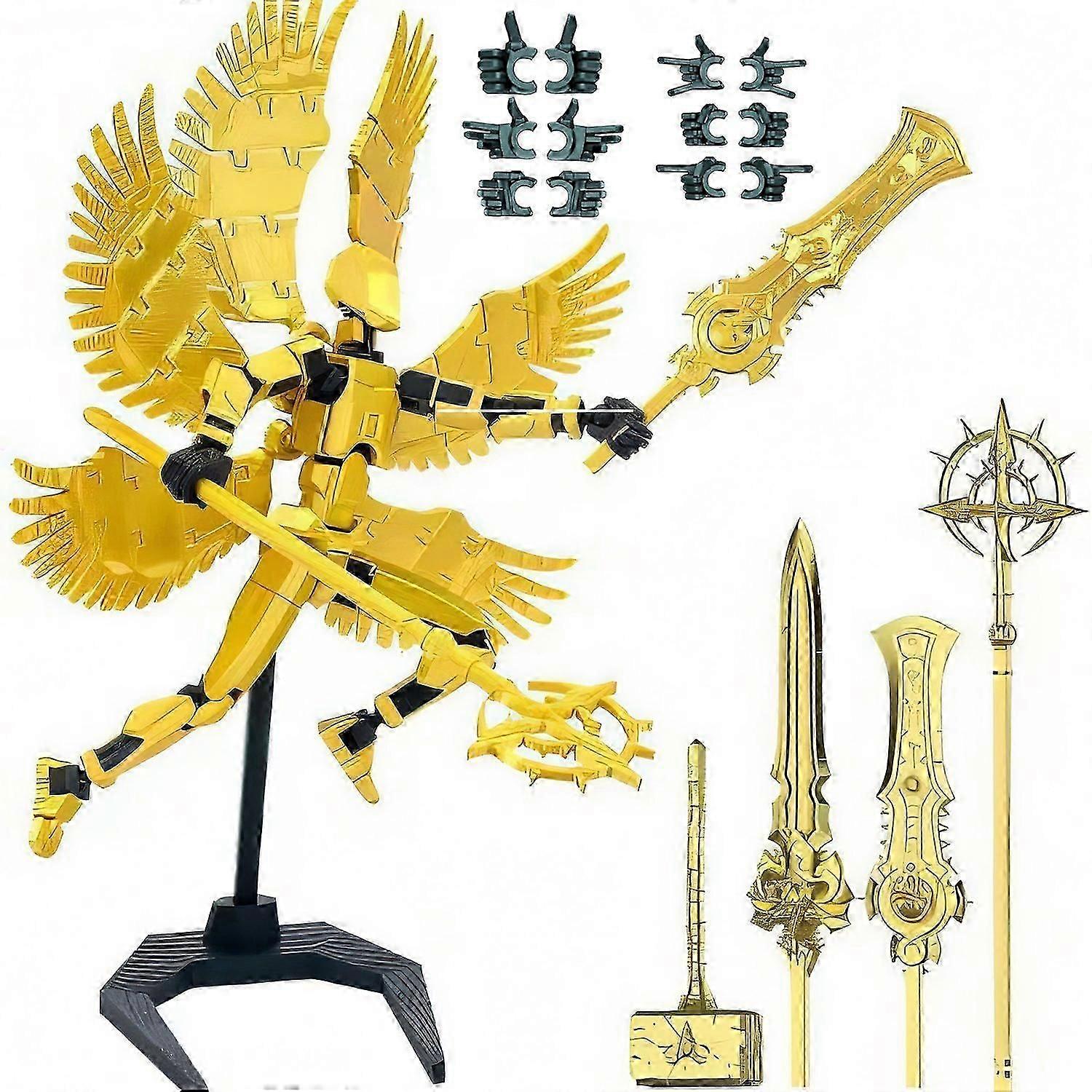 Features 1. Six winged angel T13 activity doll puzzle toy. 2. Each joint of the doll set is completely movable, allowing for flexible bending and swinging. 3. You can directly play with our mannequin 13 toy, or assemble robot 13 again. It provides unlimited possibilities for dynamic games and creative displays. 4. T13 activity doll set, mannequin 13 3D printed activity doll toy gift, robot 13 activity doll full body mechanical doll Christmas and birthday gift, suitable for boys and girls. Specification Material: PLA Color: Golden Size: 15 x 10 x 3 cm Weight: 75 g Package Include: 1x 3D Printed Action Figure Toy