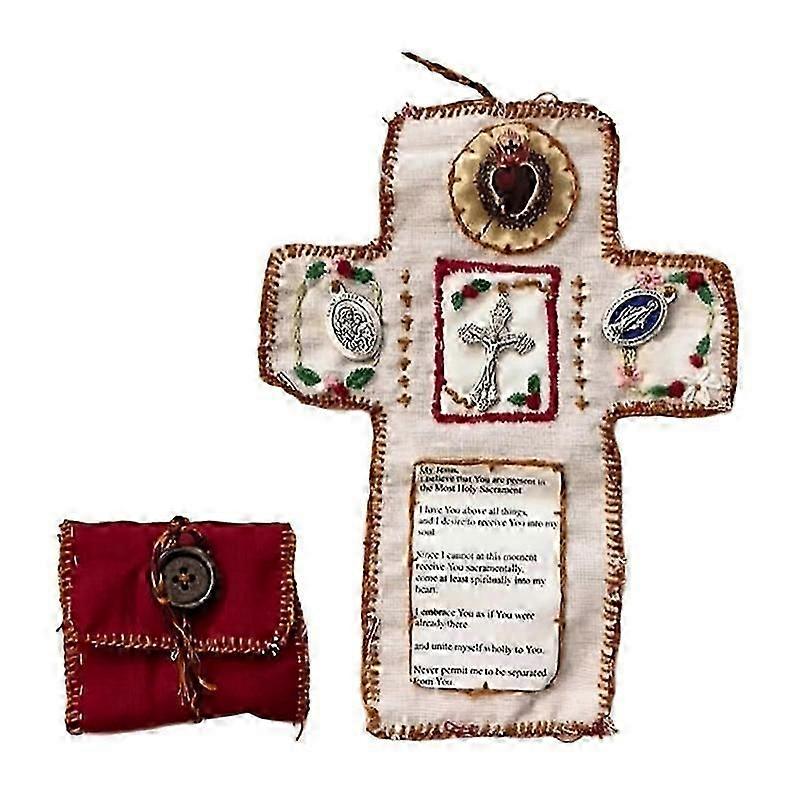 Prayer Quilt with Crucifix Inside,Handmade Pocket Shrine Catholic,Mini Portable Scripture Pocket Pra