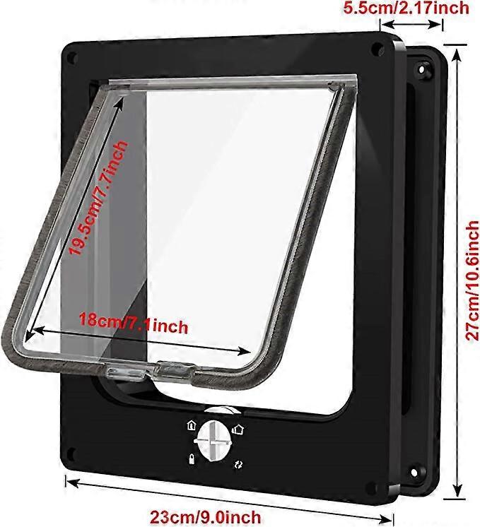 (inner size: 19.5 x 18 x 5.5cm, Black)Cat Pet Door, Magnetic Pet Door with 4-Way Rotating Lock for Cats, Kittens and Kittens, Upgraded Version