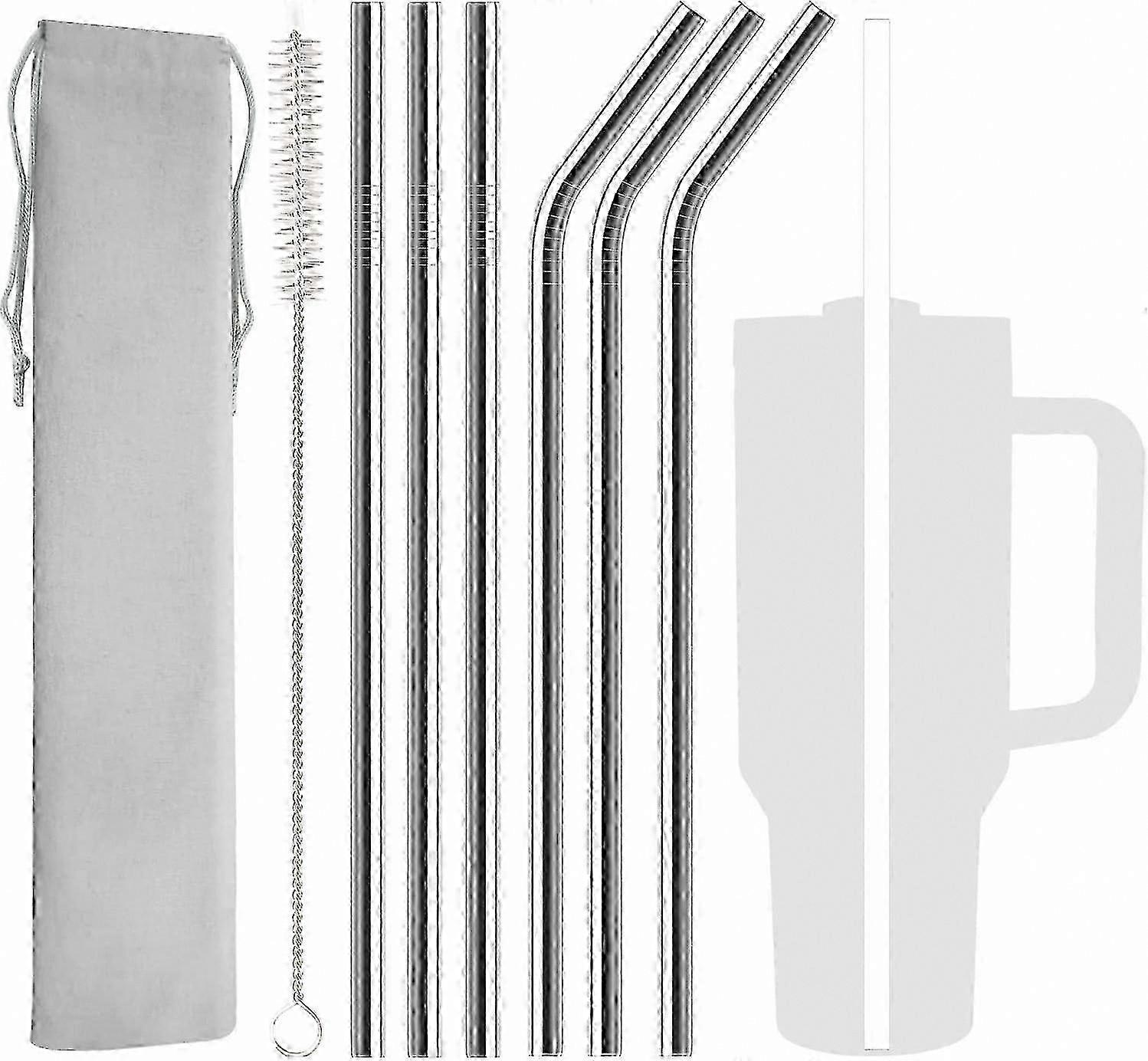 6-Pack Reusable Stainless Steel Straws with Cleaning Brush for 40 oz Tumblers and Travel Cups