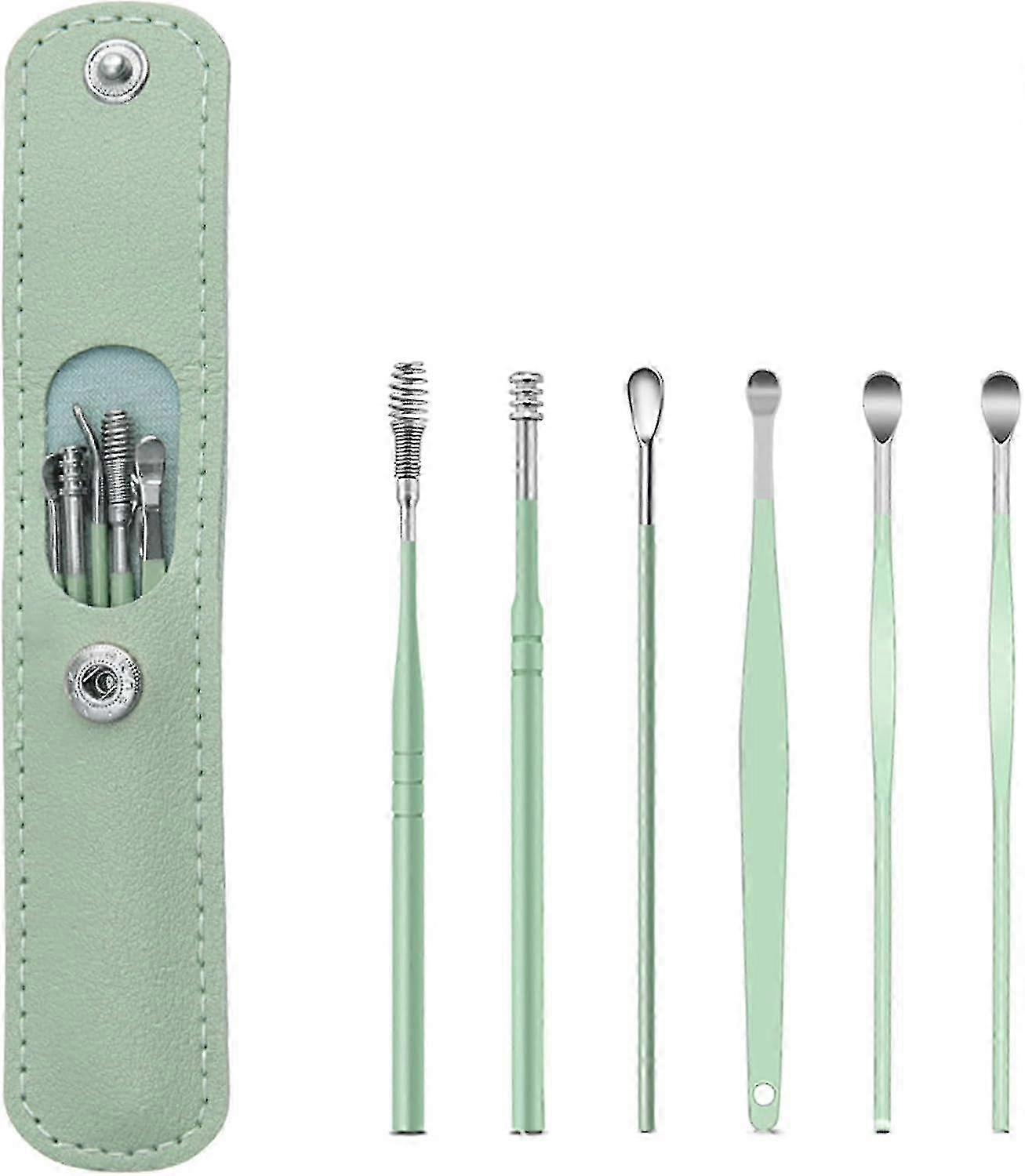 Reusable Stainless Steel Ear Wax Cleaner Set 6 Pcs for Personal & Home Use (Green)
