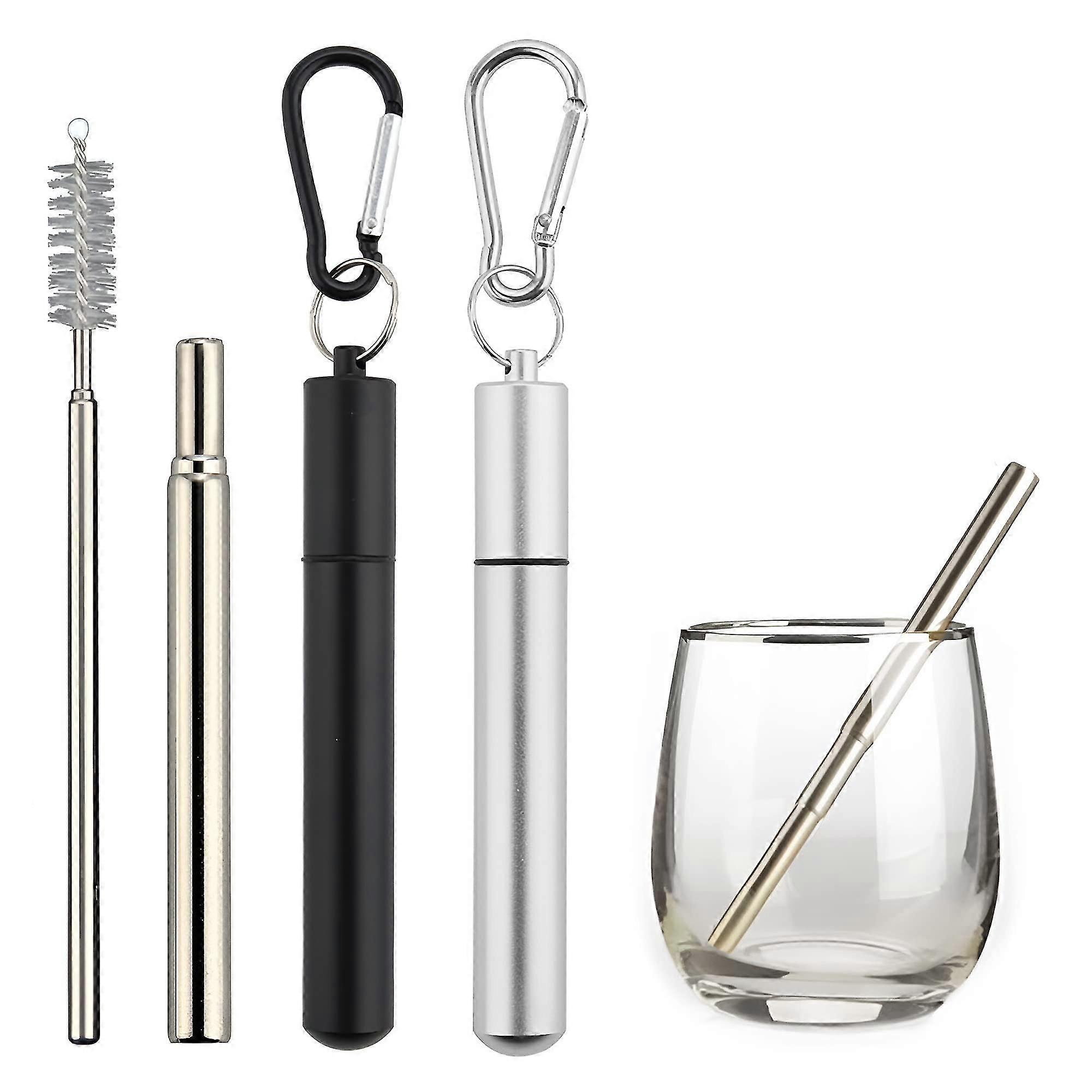 Reusable Straws Metal, Stainless Steel Straws Portable Telescopic, Reusable Straws Drinking With Key-ring Case