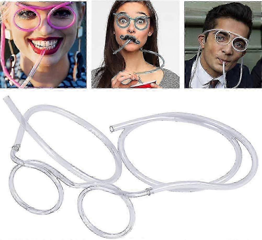 Eyeglass straw It's a straw? It's a pair of glasses? Relax and enjoy Watch the drink swirl through the straw and around your eyes with every sip. Cold drinks in summer,Hot drinks in winter,Feel the temperature. Usage scenarios Great for all ages and all occasions such as parties, hen or stag nights out or for simply a bit of fun! Simply place the rubber tubing together, place on your face and enjoy!Straw Tube Sets for Kids Birthday Parties (wedding, anniversary, birthday parties). Widely applicable : It is suitable for almost everyone, including students, office workers, artistsand some people under pressure that can add some interesting elements to your ordinary life and help you pass the boring time. Material: PVC Specifications: Frame width 11.5cm Long hose 70cm Short hose 40cm Straw diameter 5mm