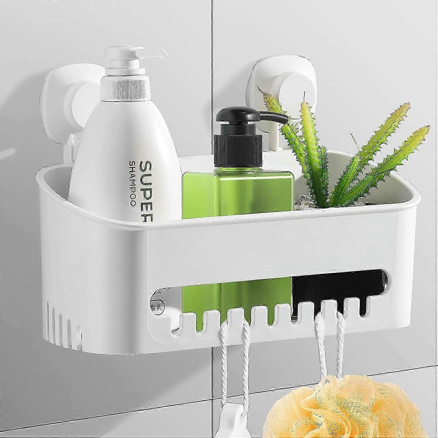 LARGE STORAGE CAPACITYThe groove in front of the basket can be used to hang small items like dish towels, brush, children's bath toys, etc. so that the space storage capacity increases immediately LOAD 10KG HUMANIZED DESIGNLarge capacity can meet different daily needs like body wash, perfume or olive oil, condiment, etc. The incision design allows you to easily take out what you need, the slope of the floor and the four-sided ventilation can effectively prevent mold from growing in the basket and keep it clean and dry POWERFUL SUCTION CUPOur plastic shower caddy are made by ABS material, safe and eco-friendly. The TPE suction cup does not age or stiffen regardless of the temperature. Once installed successfully, 1000 days without drops. Moreover, the hook is reusable, just rinse it with water and you can put it back. No need to worry about rust or aging EASY INSTALLATION WITHOUT DRILLING Connect the hanging basket loop to the hook first, then remove the protective case behind the suction cup, finally Firmly push the suction cup retainer to the clean position to install until you hear "Bo", no damage to the wall APPLICABLE SURFACE Sticks super well to SMOOTH and UN-PLAYED surfaces, such than tiles, glass, granite, stainless steel, pressure plate (not mosaic surface or slightly textured earthenware like wall plastering, latex paint, cement walls) Product Description WHY CHOOSE OUR STORAGE BOX? 1. There is a drain hole design at the bottom to help drain water, prevent water accumulation in the basket and cause bacteria growth, and protect your health. 2. The TPE suction cup is made of five-layer polymer material technology, which can ensure a maximum load of 10 kg. 3. The suction cup is fixed and the installation can be completed in 10 seconds. No tools, no drilling, no screws, no holes, no glue and no damage or marking on the wall (please pay attention to the applicable surface shown below). 4. Reusable, durable. Made of TPE and ABS plastic which has superior durable toughness, weather resistance, oil resistance, anti-aging and no deformation, won't harden in winter. So it's ideal everyday storage for bathrooms, kitchens and living rooms to store toiletries, strainerware or other kitchen utensils. Due to its detachable design, it can also be used as a desk organizer Patent The octopus bionic suction cup design is more than ordinary rubber suction cups. Our suction cups made of high-density molecular materials can be tightly integrated with the installation surface to achieve firm adsorption on the surface. Durable Using high-quality materials, professional designers ingeniously design the structure of the basket to ensure practicality and durability. It is the best choice for home storage Reusable and Removable Easy for moving, just rinse with water to change the position. ATTENTION Especially suitable for ceramic tile, glass, granite, stainless steel, pressure plate and any other absolutely SMOOTH/FLAT/NON-POROUS, NON-PRISE surface; not suitable for plastered walls, latex paint, old tiles, cement wall and other rough materials. No tools, no drilling, no screws, no holes and no glue required , will not damage or mark your wall Specifications Color: White Capacity: 10 kg Material: Plate PC printing + TPE suction cup + ABS hook Applicaiton: bathroom, shower, kitchen, bedroom, office, entrance, drawer ATTENTION: Not suitable for plastered wall , cement wall, mosaic or slightly textured earthenware surface, CONSULT OUR SERVICE BEFORE YOUR PURCHASE IF YOU ARE NOT THE SURFACE 1. Clean the surface you want to hang the hooks on and make sure it is dry and smooth. 2. Snap the hook into the slot in the basket and remove the protective plastic shell from the suction cup. 3. Push the hook as indicated on the hook with force until you hear a "BO". And check the hook by pulling the hook down. 4. If you want to unhook, please remove the hook using a thin card. Do not take it off directly to avoid hurting your hand, because the suction power is very strong.