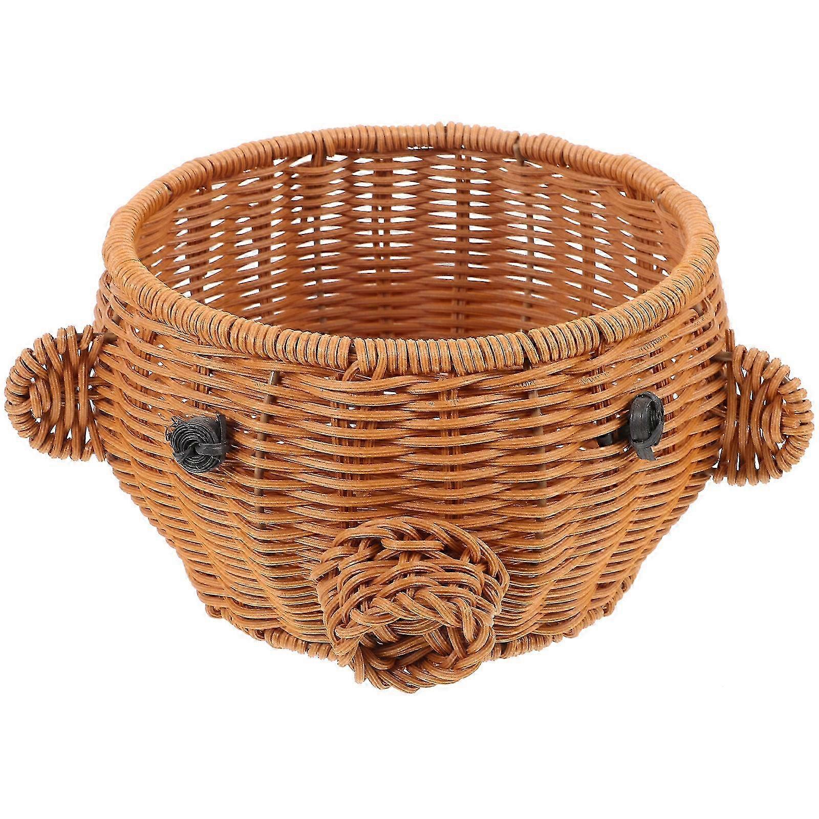 Reusable Woven Bread Basket Imitation Rattan Fruit Serving Basket 22x22x11.5cm Light Brown