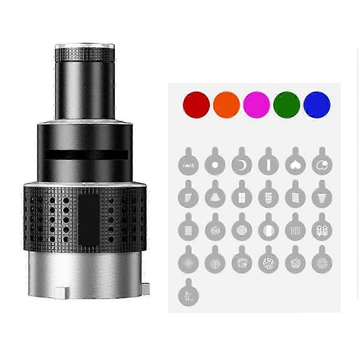 [CASUAL CREATION ]:Gobos and color gel could be used together,also could use alone to achieve special light effects.Providing more abundant resources for . [MULTI-FUNCTION]: focus ring design can make projection clear.And another important function is that you can get the projection from spot to wide by manually change the aperture size.Very suitable for photographers to portrait and products. [WIDELY USED]:Premium material made of Aluminum Alloy,gobos are also made of stainless steel and high temperature resistance.Suit for almost all powerful LED and strobe flash light on the market.(It is recommended not to use the modeling light for a long time in use to prevent high temperature from damaging the lens) Colour:Silver Material:Aluminum Alloy Package Contents: 1 x Optical Spotlight Lens 25 x Gobos 5 x Colorful Gobos Only the above package content, other products are not included. Note: Light reflection and different displays may cause the color of the item in the picture a little different from the real thing. The measurement allowed error is +/- 1-3cm.