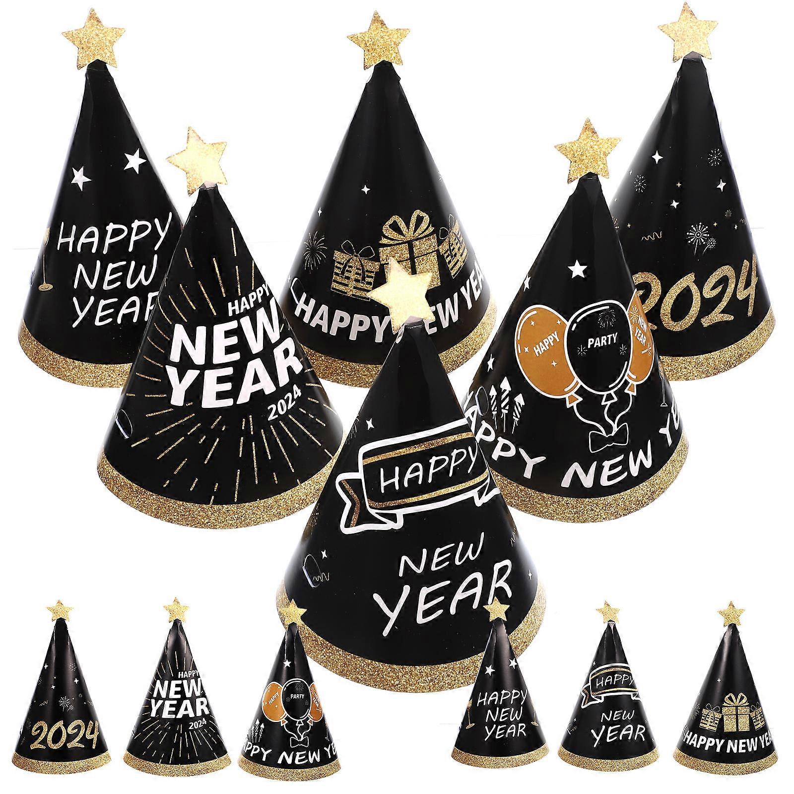 Photography Props New Year Cone Hats Black Gold For Photo Sessions Carnivals 12Pcs