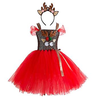 写真撮影幼児服フリルレッドメッシュスカート衣装のための赤ちゃんの女の子のクリスマスドレスキッズ