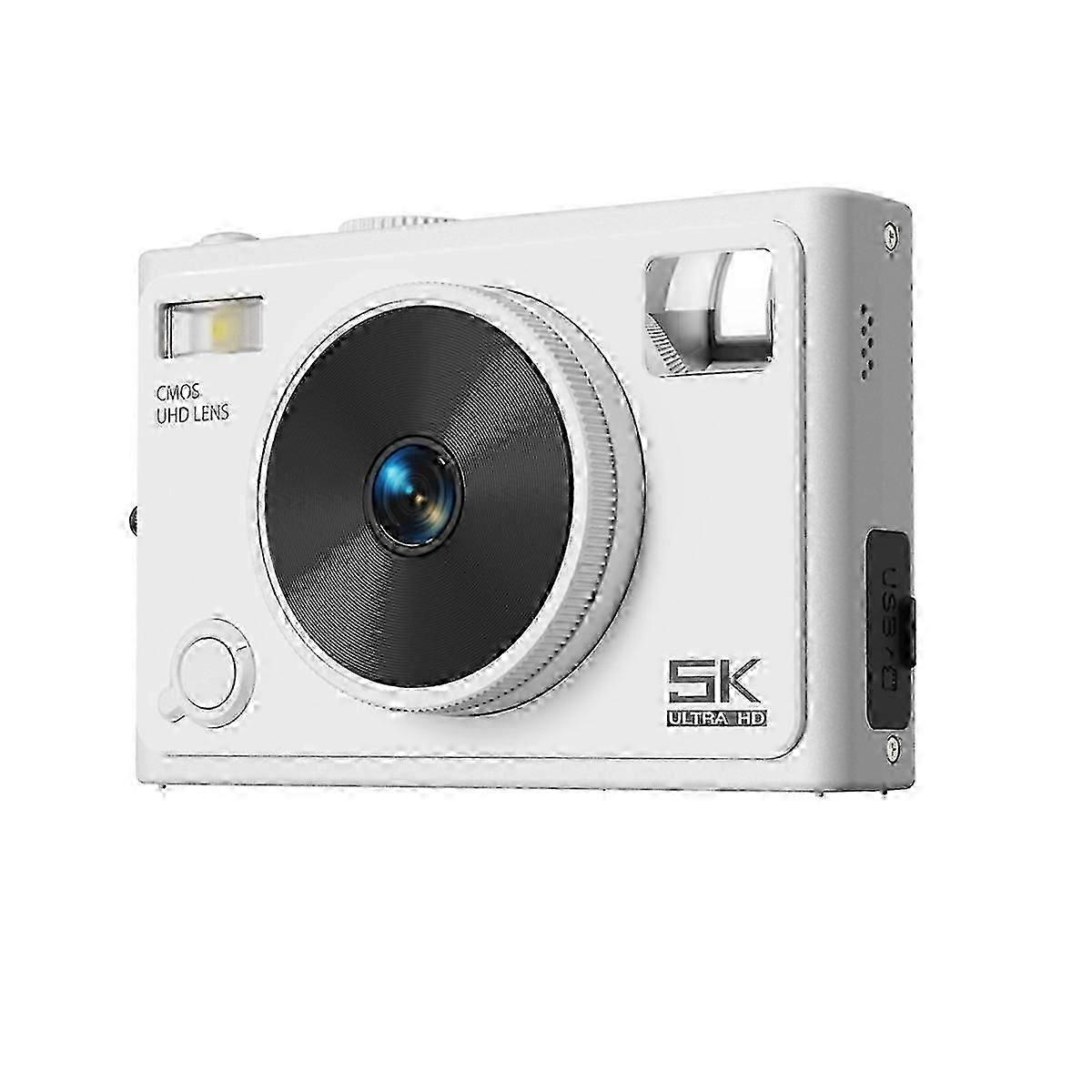 5K Digital Camera for Photography Compact Digital Camera Front and Rear Dual Lens Camera Autofocus Selfie Camera White