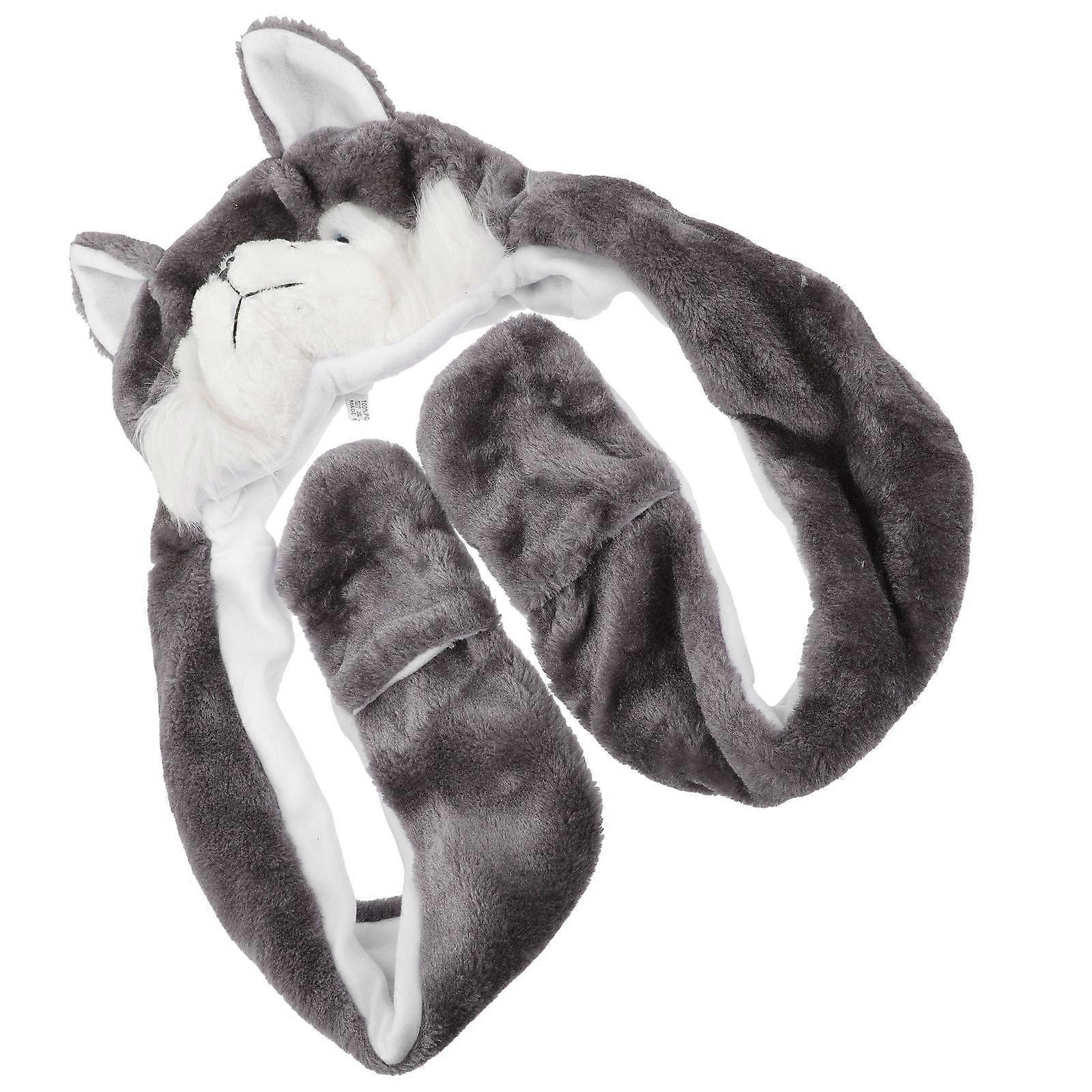 Thick Animal Hat Scarf Set For Kids Leisure Time In Winter Outdoor Activities Grey 1Set