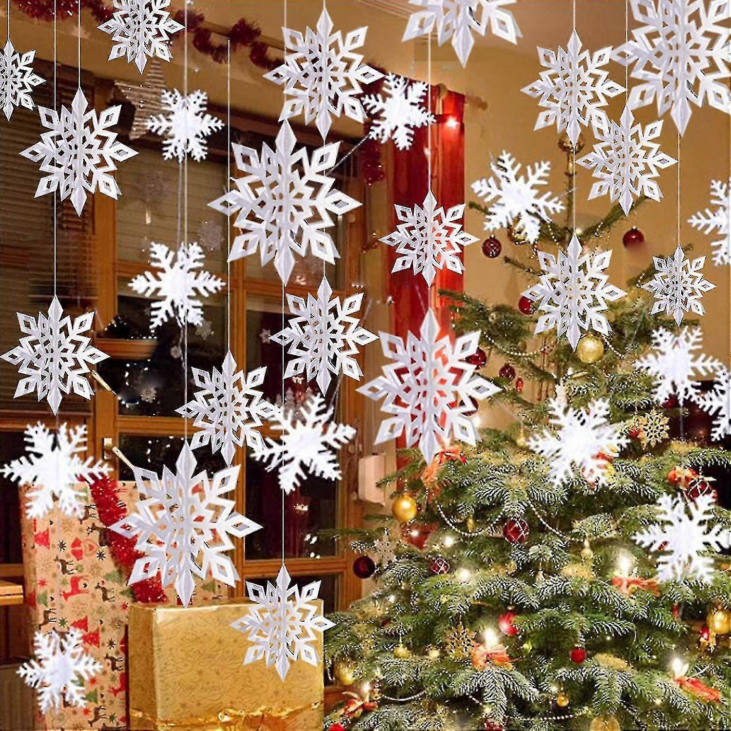 Winter Christmas Hanging Snowflake Decorations, 12pcs Snowflakes Garland 12pcs 3d Glittery Large White Snowflake For Christmas Winter Wonderland Hol