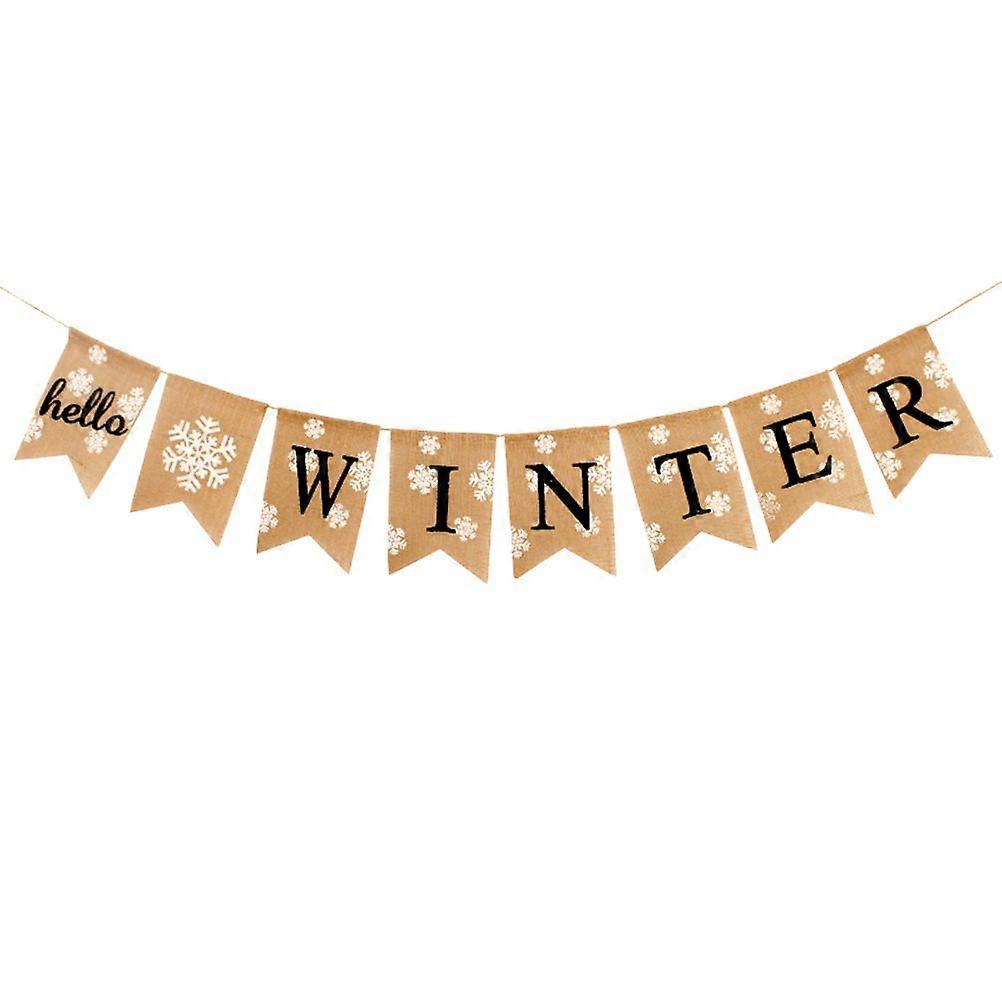 Winter Theme Burlap Banner Delicate Snowflake Swallowtail Garland Letter Printing Bunting Flag Linen Party Supplies Decorations