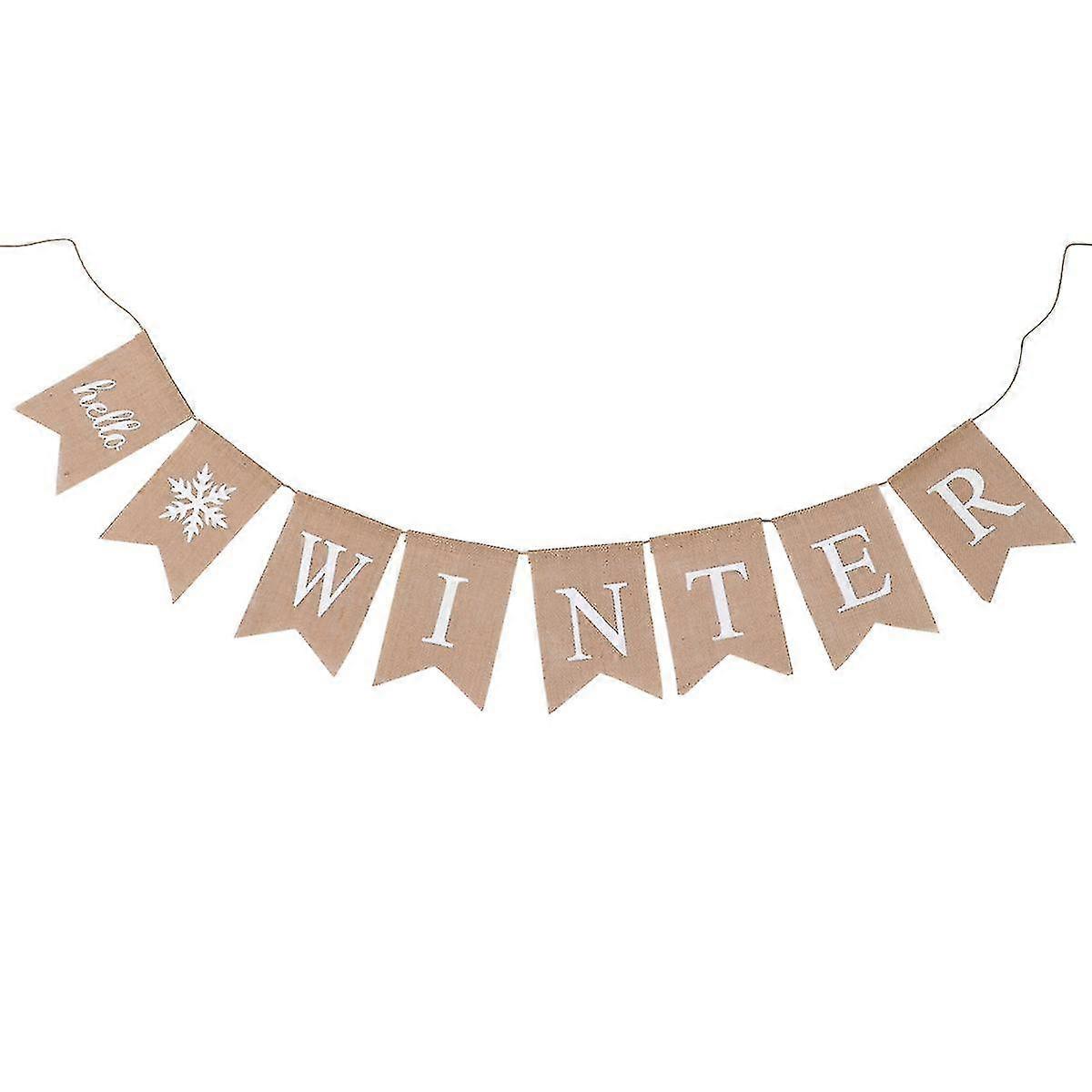 Winter Theme Burlap Banner Creative Letter Printing Swallowtail Garland Snowflake Bunting Flag Linen Party Supplies Decorations