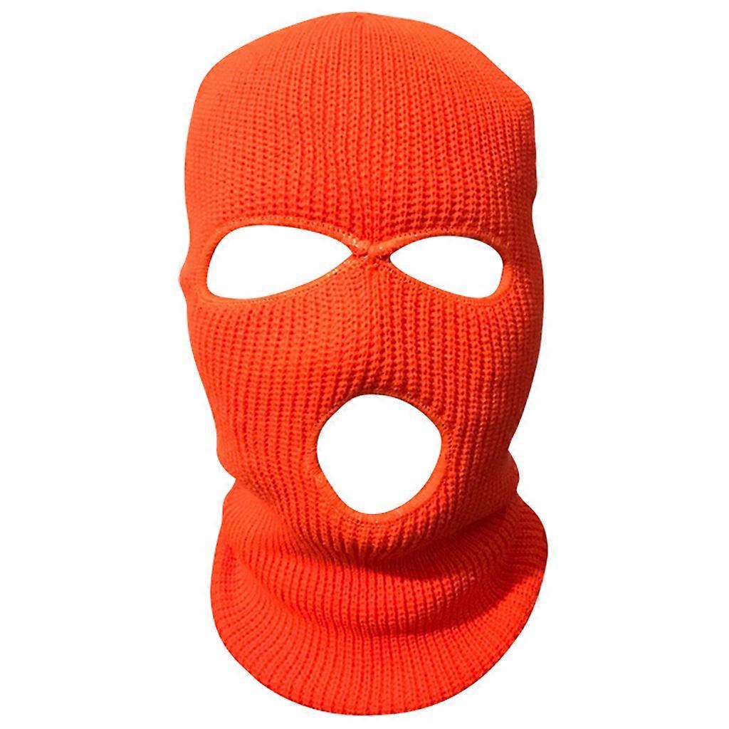 Winter Knit Cap Warm Soft 3 Hole Full Face Ski Hat Hood Motorcycle Helmet Liner Solid Color Balaclava Beanie Neck Warmer fluorescent orange