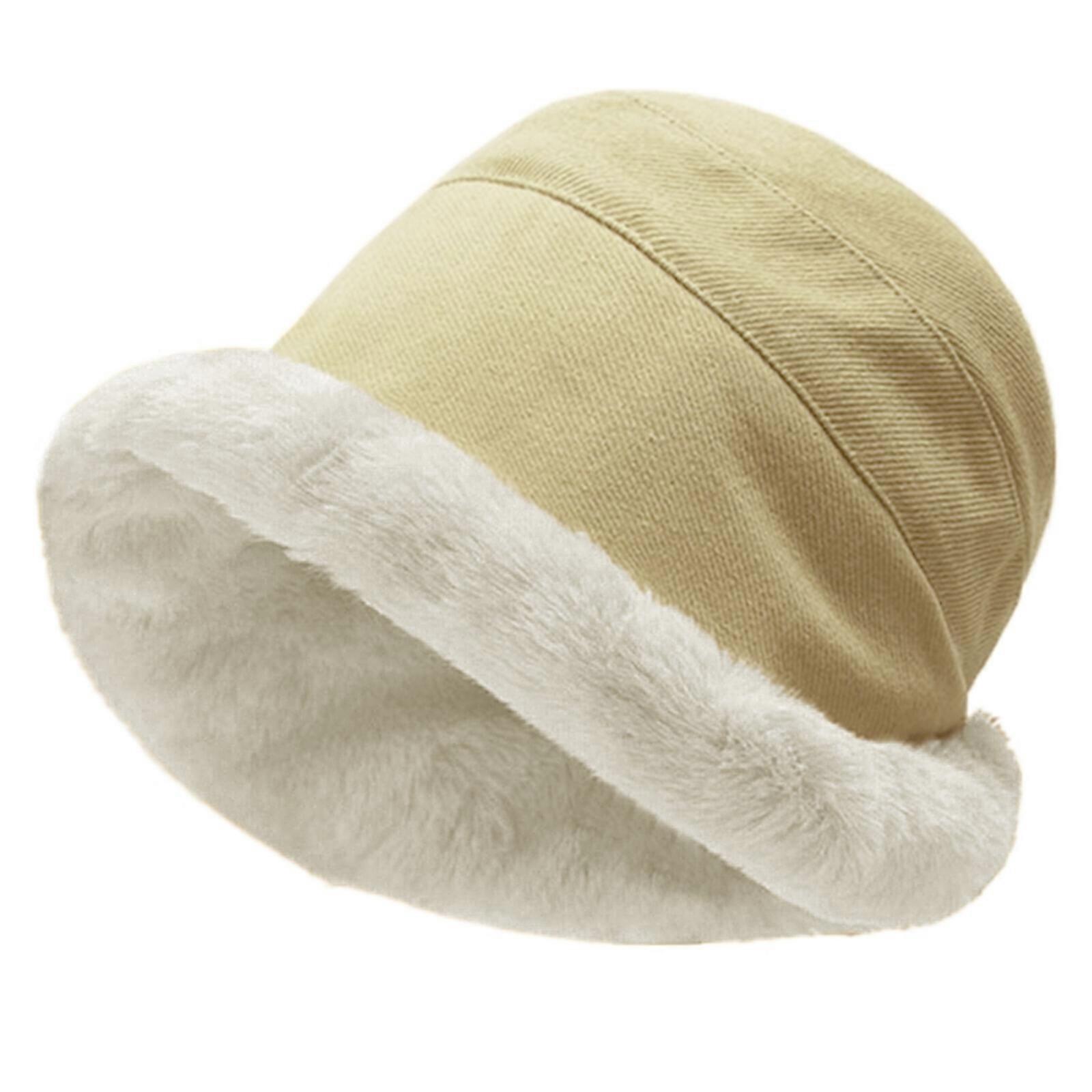 Winter Faux Fur Bucket Hat Fluffy Warm Hat for Women Men Basin Hat Getaway Headwear Jazz Streetwear Khaki