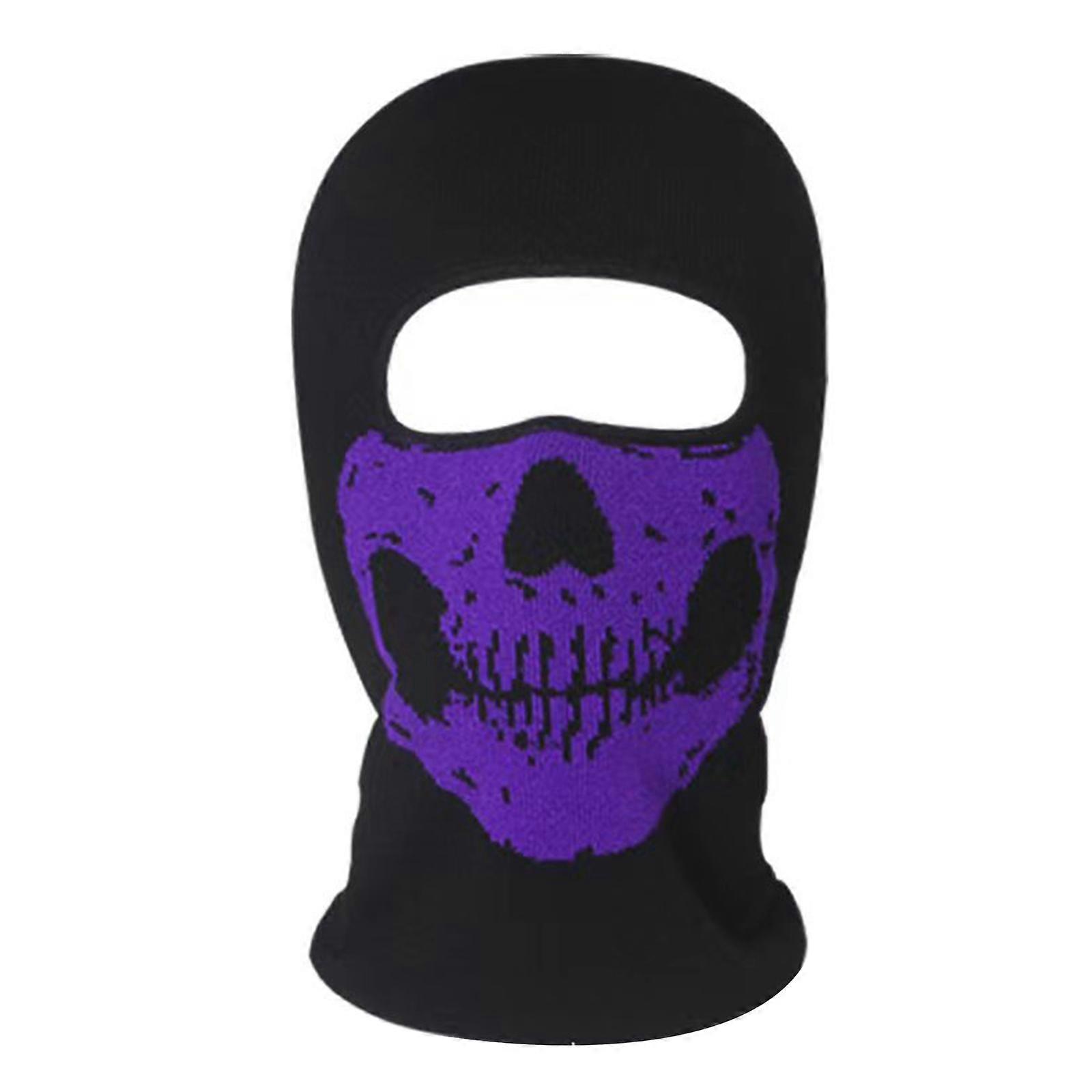 Winter Face Mask Jacquard Hat Warm Knitted Balaclava for Men Womens Windproof Face Cover for Outdoor Halloween black purple