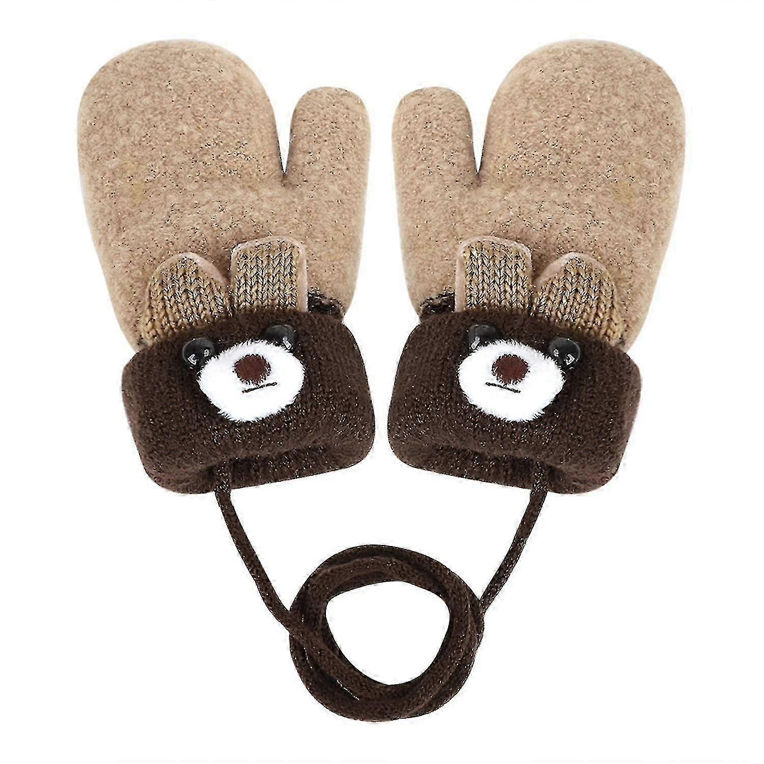 Winter Full Finger Gloves Toddler Warm Infant Thick Fleece Lined Ski Gloves With Cords Fk