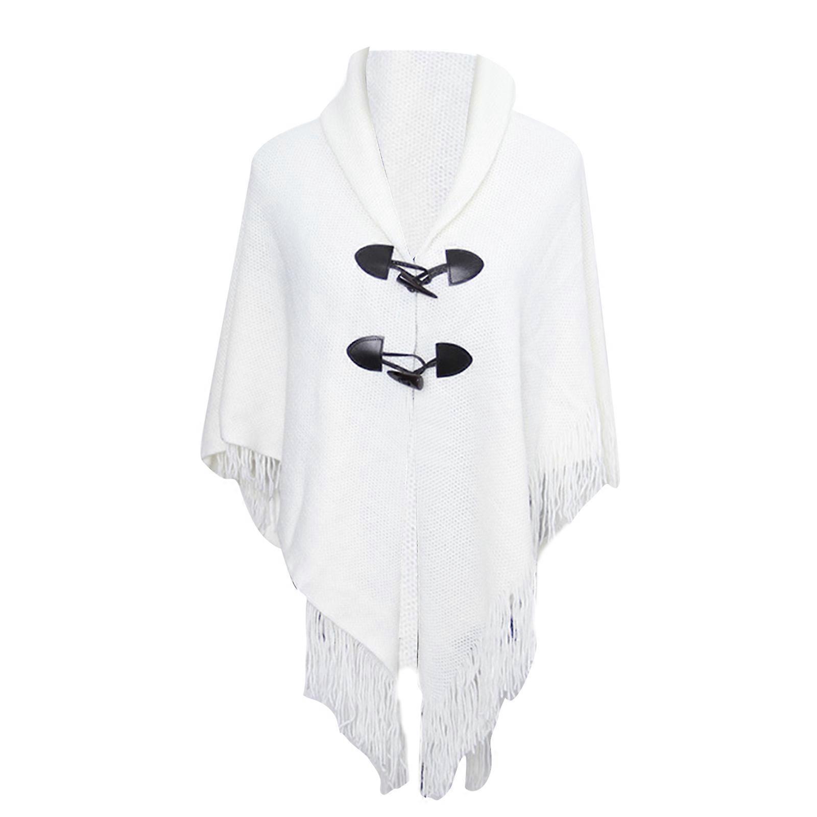 Winter Poncho Cape Cloak Shawl Wrap Poncho With Button Women Shawl Wrap Poncho Ruana Cape Cardigan Sweater Open White