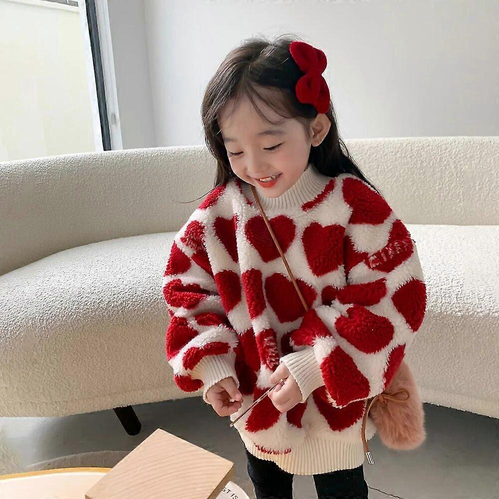 Winter Girls Cute Heart Thick Warm Fleece Sweatshirts Baby Children Pullover
