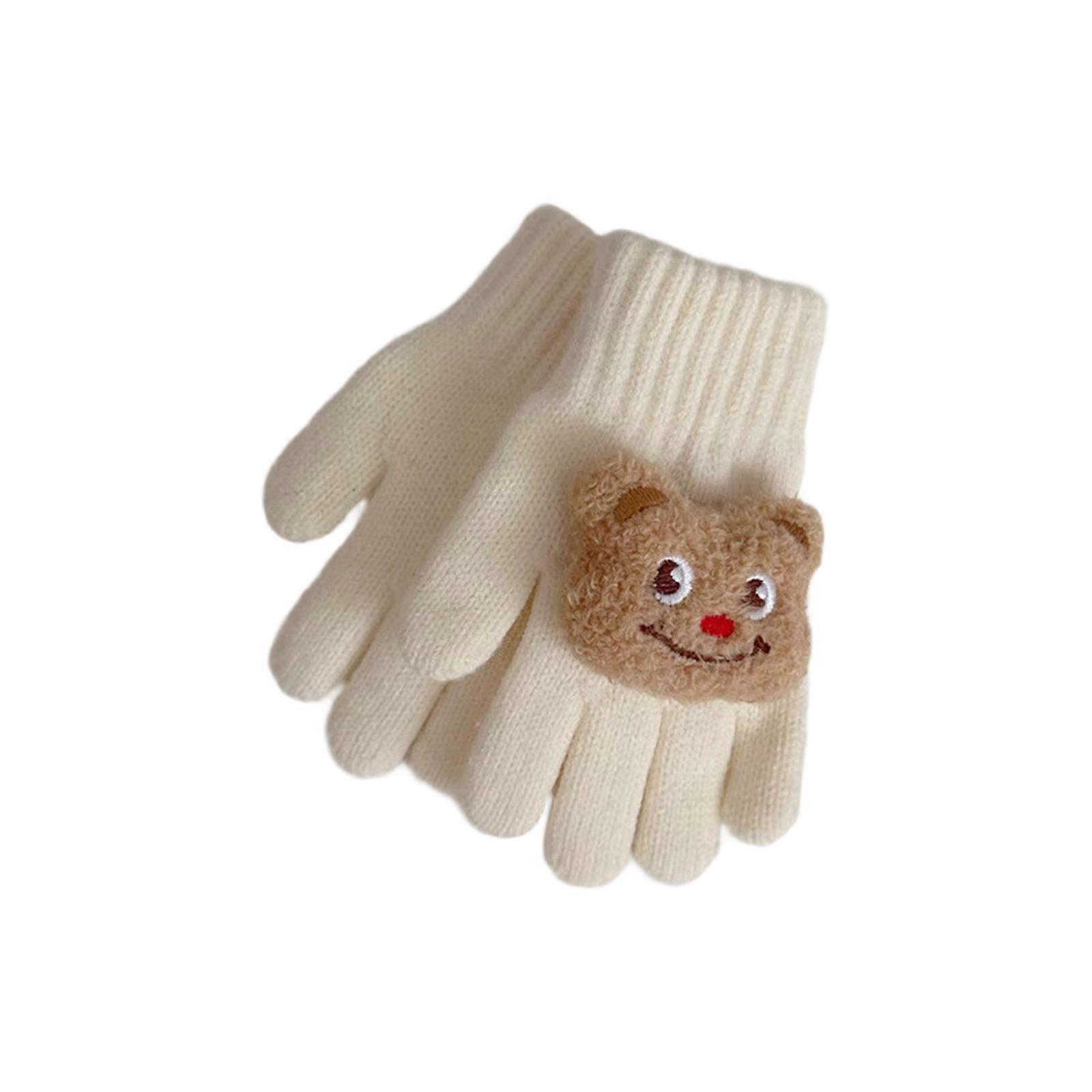 Winter Children's Plush Split Finger Gloves/Hanging Neck Gloves Unisex Boys Girls Knitted Mitts Cartoon Warm Mittens knit white