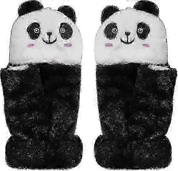 Winter Warm Convertible Fingerless Gloves Mittens Thick Plush Cute Panda Gloves Faux Animal Fur Half Finger Cycling Gloves For Women Girls