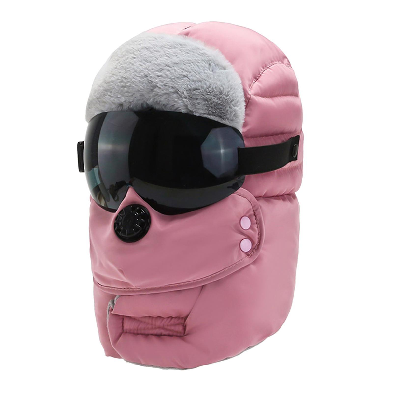 Winter Warm Fleece Balaclava Hat Snow Neck Face Mask Pink Black Glasses