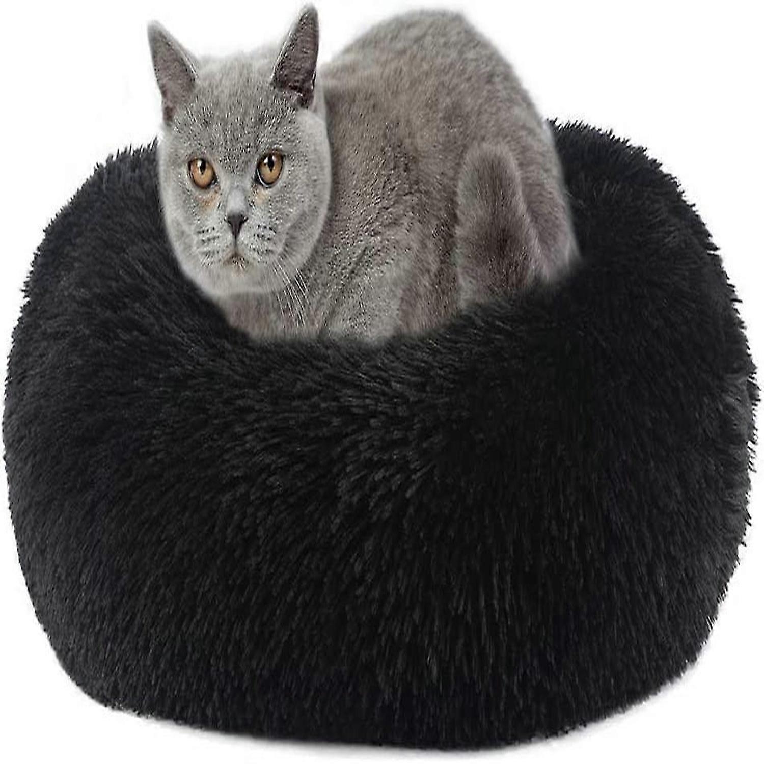 Winter Warm Pet Round Plush Mat Anti-Slip Base (Black, 40cm) 1pieces