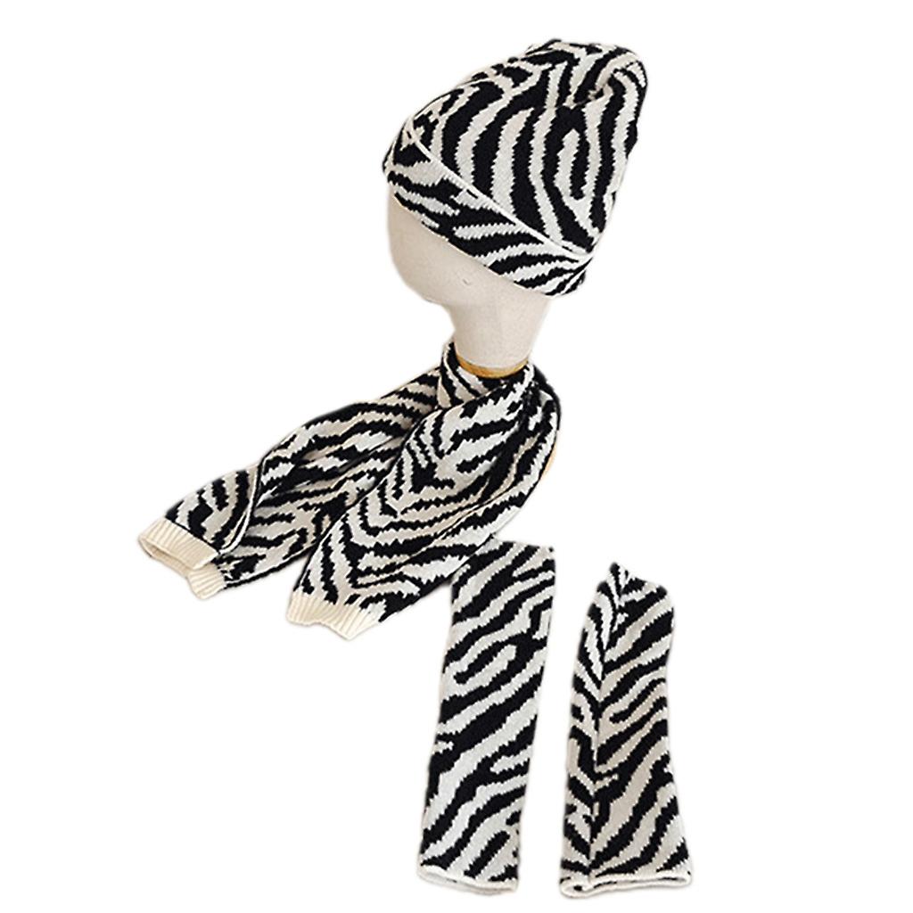 Winter Warm Hat Cap Zebra Pattern Scarf Warm Sleeves To Cover Arms For Women