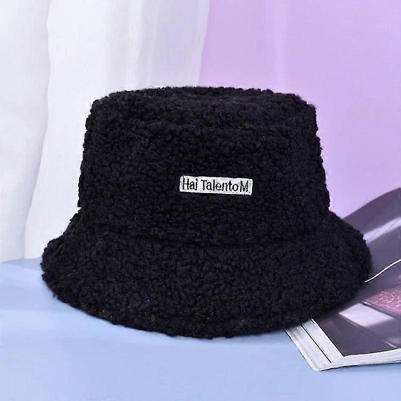 Winter Baby Girl Boy Bucket Hat Cute Lamb Wool Letter Kids Fisherman Hat Solid Flat Top Hats Children Outdoor Thick Warm Sun Cap