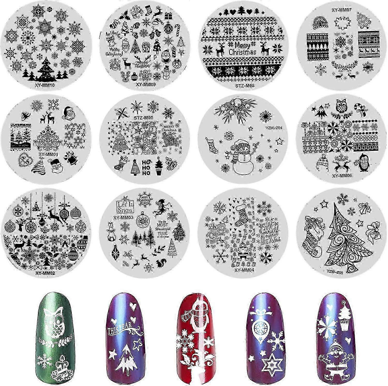 12 Winter-Themed Nail Stamp Plates - Snowflake & Owl Designs for UK Nail Art