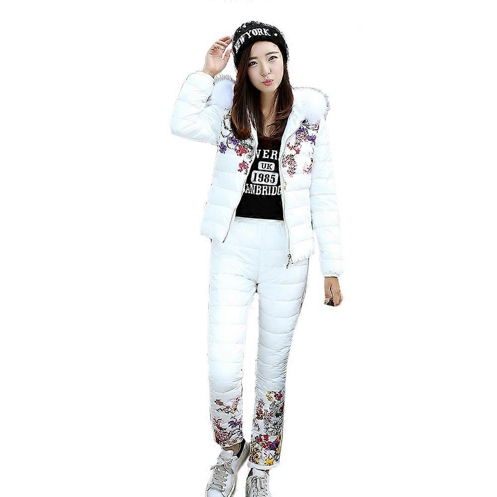 Winter Slim Suit Down Coat Woman Fur Collar Cotton Trousers