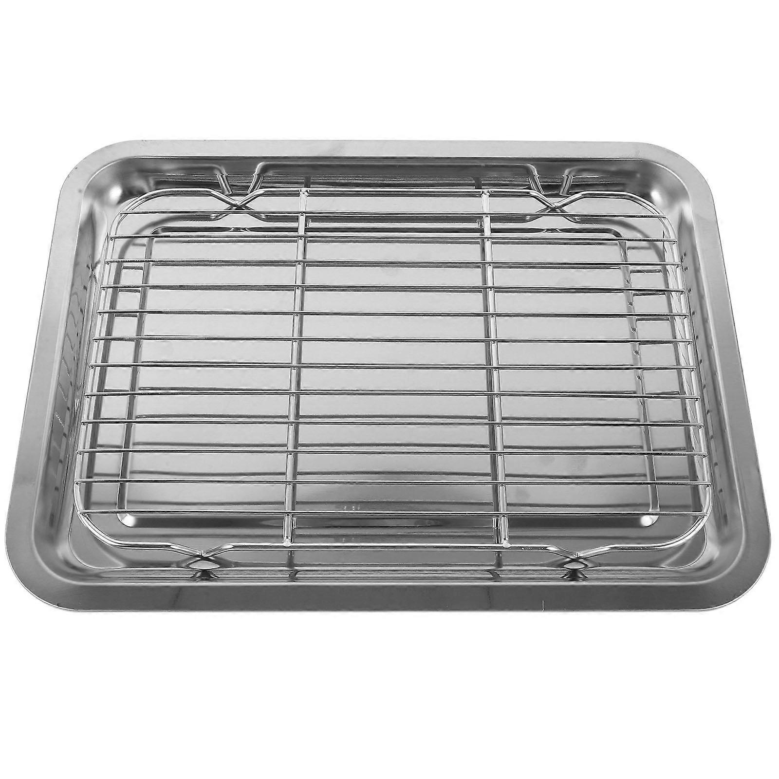 Easy to use and clean, you can rinse and dry after every use. Can store candies, snack, nuts, and many other food to satisfy your demands better. Stainless steel plate and oil drain rack, this tray is a good helper in your home. Features -Color:Silver -Material:Stainless steel -Size:35.00X26.50X2.00cm/13.76X10.41X0.79in -Size:30.50X20.50X1.50cm/11.99X8.06X0.59in - Safe and convenient to use, not easy to break or deform, reusable and can be applied for longtime. - Used for crisp up chicken , cheese sticks, fries and more with fat . - The plate has a wide range of applications, many scenarios such as home, restaurant, outdoor, kitchen use. - workmanship, comfortable to the touch, table decoration. It's sleek and looks more modern. - Ideal for home kitchens, outdoor camping and restaurants, the oil strainer pan is a must-have tool for all cooking enthusiasts. Package list: 1 x cooling rack 1 x stainless steel tray