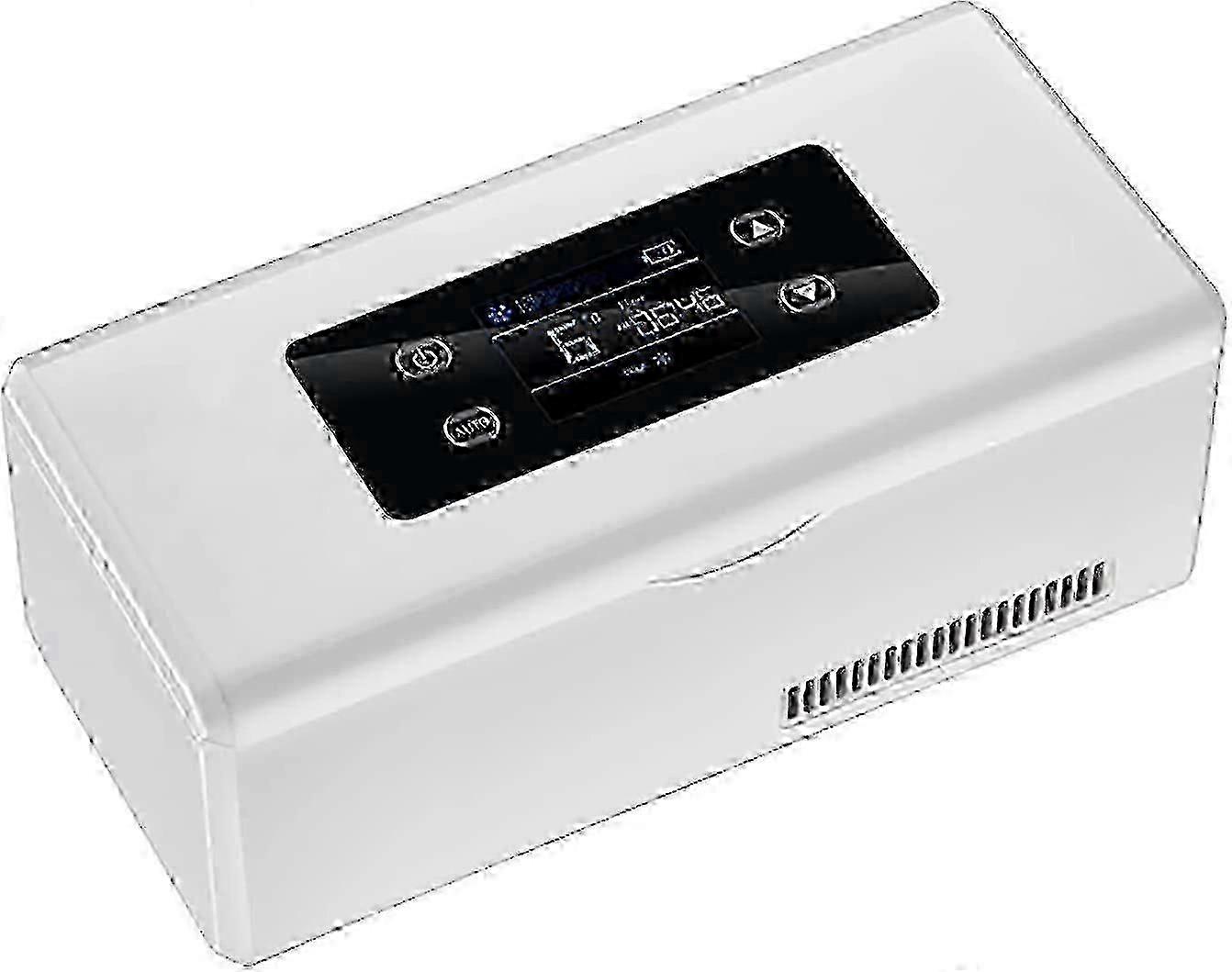 Intelligent Temperature Control: A high-definition LED display simplifies operation and displays real-time temperature, making it more convenient for the elderly. Cooling temperature: 2-8C (35-46F), operating temperature below 25C (77F). If the room temperature exceeds 25C, the housing will not cool below 8C. Refrigeration space (L*W*H): 192*61*30mm/7.5 by 2.4 by 1.1 inches; external dimensions: 220*100*90mm/8.6 by 3.9 by 3.5 inches. It can accommodate 3-5 insulin pens, 9 vials of interferon, or 15-20 refill cartridges. Multiple power supply options: Suitable for power banks, household outlets, cars, and batteries. Equipped with a 10200mAh lithium battery, it lasts up to 6 hours. Application: The insulin cooler is designed to provide a convenient and economical way to keep medications, such as insulin or other injectable medications, at a safe temperature. Besides travel, you can also use it at work and at home: many work environments experience extreme temperatures; even thermostatically controlled areas may shut down at the end of the workday. Most people prefer to store insulin in a private environment rather than a shared refrigerator. [Product Specifications] Temperature range: 2 - 835F - 46F Operating environment: below 30C Lithium battery capacity: 10200mAh Battery life: about 6 hours External dimensions: 220 * 100 * 90mm / 8.6 * 3.9 * 3.5 inches Refrigerated storage space (L * W * H): 192 * 61 * 30mm / 7.5 x 2.4 x 1.1 inches Usage Tips 1. When the ambient temperature is below 30F, it can be cooled to below 8F. 2. If using the power adapter for a long time, please unplug the built-in battery. 3. When connected to a power source, avoid setting the temperature too low in a humid environment to avoid excessive condensation and short circuit of the device.