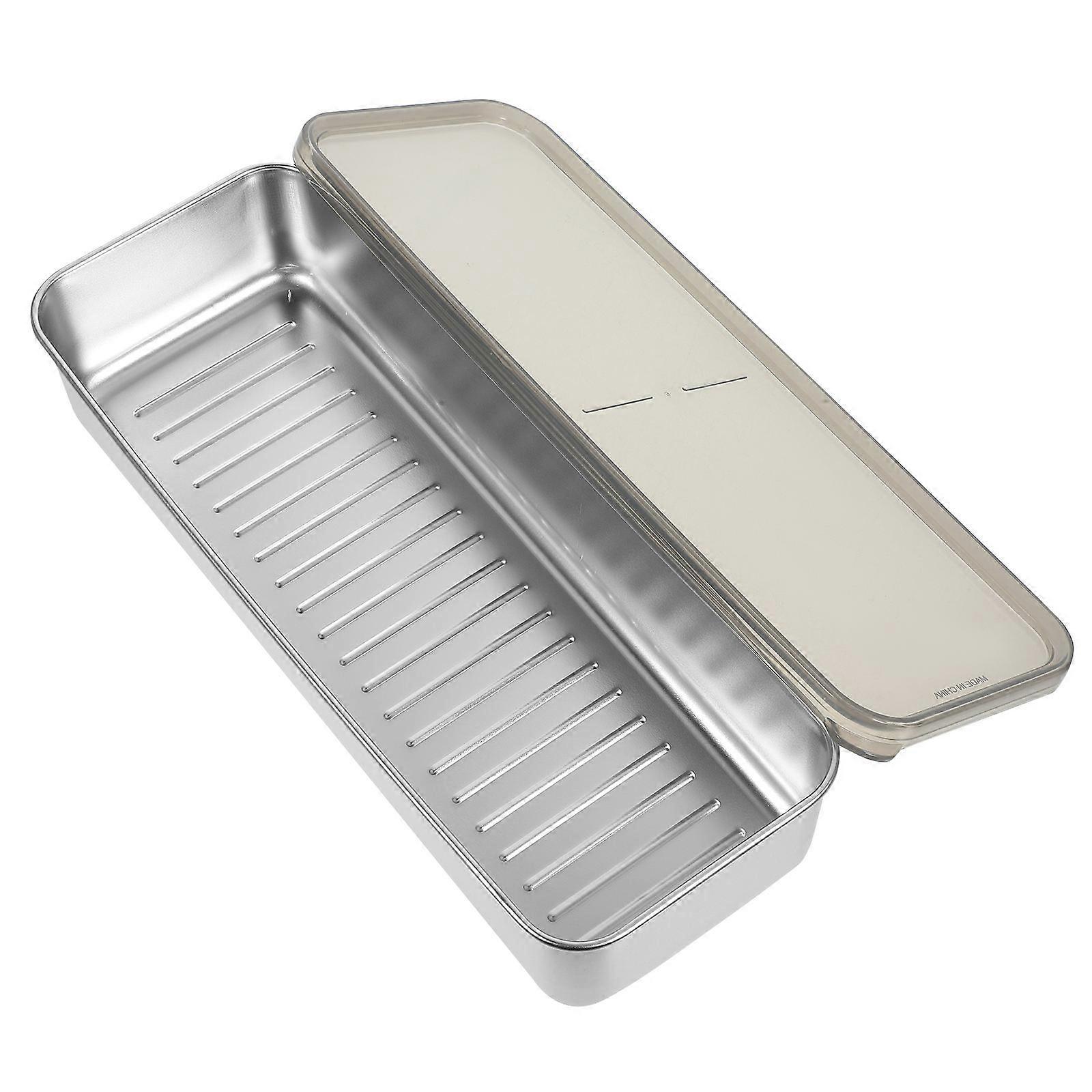 Refrigerator Storage Box 304 Stainless Steel Food Container Rectangular Shape Fridge 27.00X10.00X5.00CM 1Set
