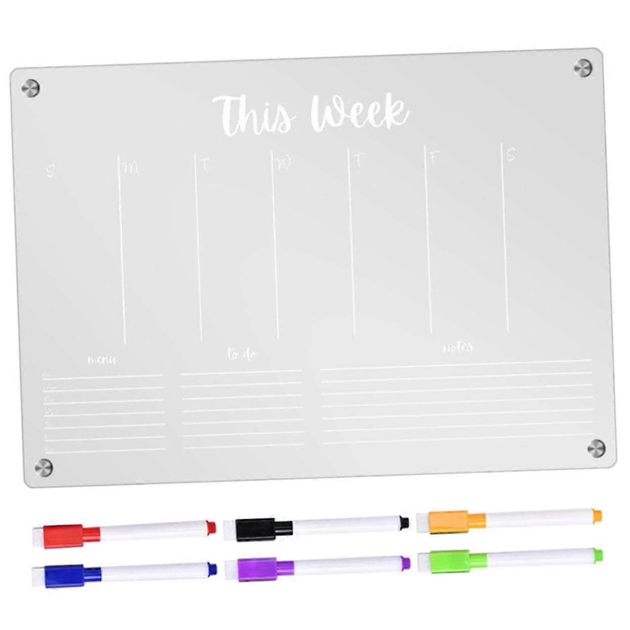 1 Acrylic whiteboard for fridge – erasable weekly planner, note pad, dryerase board, transparent acrylic slate, fridge organizer.'