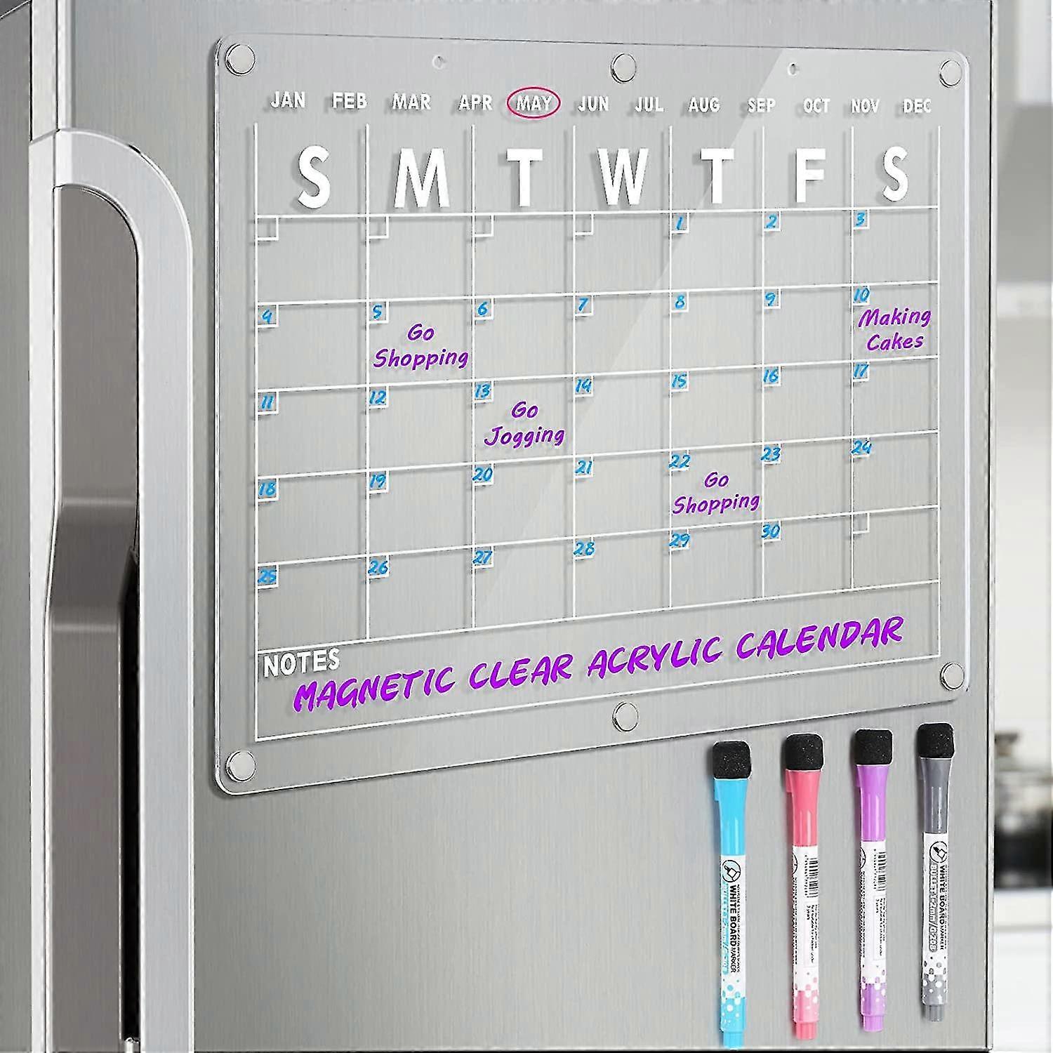 Acrylic Magnetic Dry Erase Board Calendar For Fridge, 16.5"x12" Inch Clear Dry Erase Calendar For Refrigerator, Magnetic Planning Calendar Includes 4
